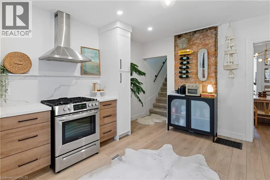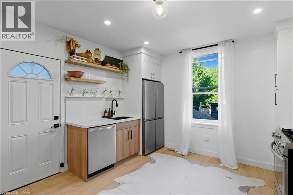 Barton Street to Bay Street Welcome home to 249 Bay St. N, a beautifully updated, all brick, 1870 century home that blends historic charm with modern convenience. This home is full of character while offering all the updates buyers are looking for. Step inside to a bright and airy main floor featuring soaring ceilings, a large bay window, and spacious rooms. The brand-new kitchen is a true showstopper with quartz countertops, hardwood shelving, solid wood cabinetry, exposed brick, and new stainless steel appliances. Durable luxury vinyl tile flooring runs throughout, adding both style and practicality. Upstairs, youâll find two comfortable bedrooms and one 4pc bath, with the original third bedroom thoughtfully converted into a spacious laundry / dressing room â adding modern function without sacrificing style. Outside, enjoy a deep lot designed for entertaining, gardening, and relaxing â feeling like a private retreat with mature trees, fruit trees (apple, cherry, mulberry), and multiple zones for lounging and playing. The upper yard is fully fenced with a charming exposed brick backdrop, while the lower fenced yard is perfect for pets or relaxing under the trees. Located in a family-friendly community, youâll love being just steps from Bayfront Park, the marina, lakefront trails, the West Harbour GO Station, trendy restaurants, shops, and schools. This home is a perfect balance of historic charm and modern upgrades. Donât miss your chance to own a piece of Hamiltonâs history in one of its most convenient and vibrant neighbourhoods. (id:27476)