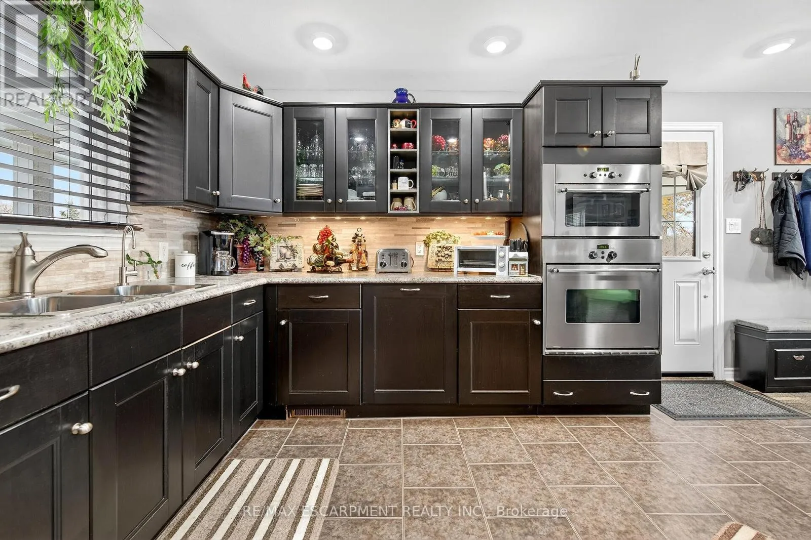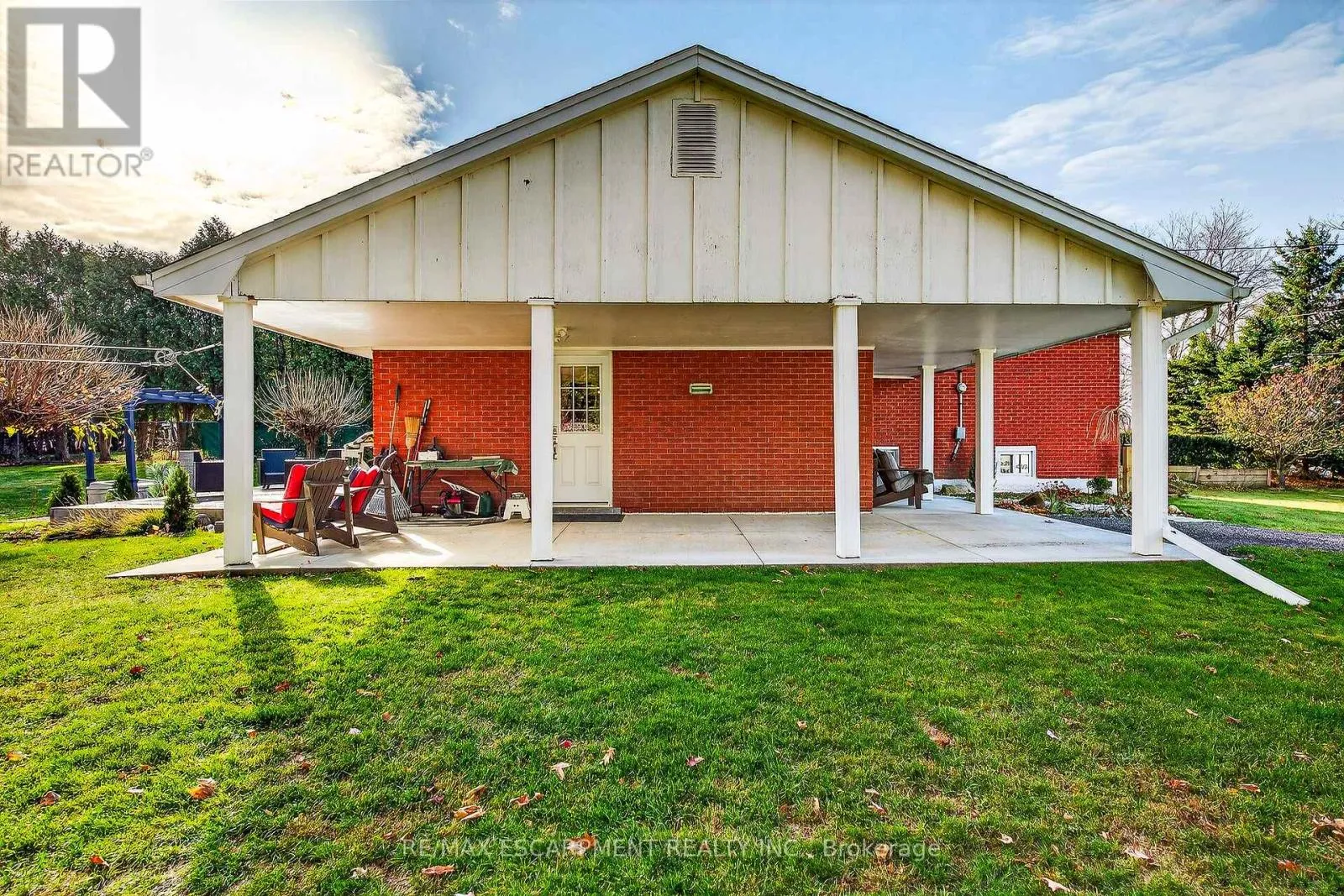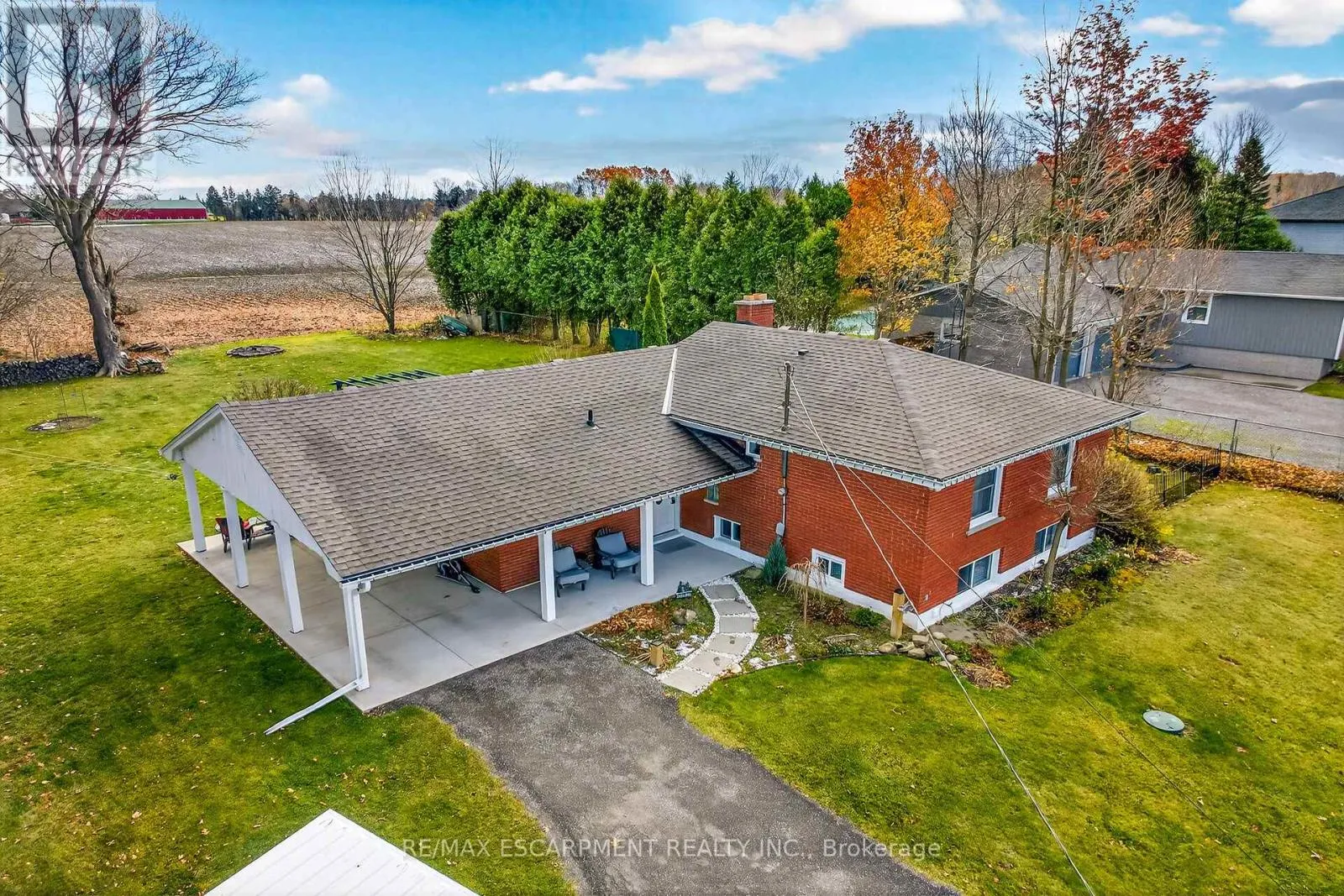 Cross Streets: Guyatt Rd. ** Directions: WHITE CHURCH RD E TO TRINITY CHURCH. Beautifully presented, Exquisitely updated 3 bedroom, 2 bathroom Sidesplit situated on picturesque 100' x 218' mature lot on sought after Trinity Church Rd. Great curb appeal with all brick exterior, welcoming front walkway leading to covered porch, attached car port, tastefully landscaped, & entertainers dream back yard with recently updated composite deck overlooking calming country views. The flowing interior layout features close to 2000 sq ft of well designed living space highlighted by gourmet kitchen with oversized eat at island, S/S appliances, tile flooring, & backsplash, formal dining area leading to patio, spacious living room, 2 large upper level bedrooms, & updated primary 4 pc bathroom. The finished basement includes rec room, 3rd bedroom, additional 3 pc bathroom, laundry room, & storage area. Conveniently located minutes to Hamilton amenities, restaurants, shopping, schools, parks, & easy access to Red Hill, Linc, QEW, & 403. Upgrades throughout include modern decor, flooring, & fixtures, kitchen, decking, roof shingles - 2019, hi eff N/Gas furnace & A/C. Rarely do properties in this location come available for sale in the price range! Perfect home for all walk of life. Shows well - Just move in & Enjoy! Experience Hannon Country Living at its Finest! (id:27476)