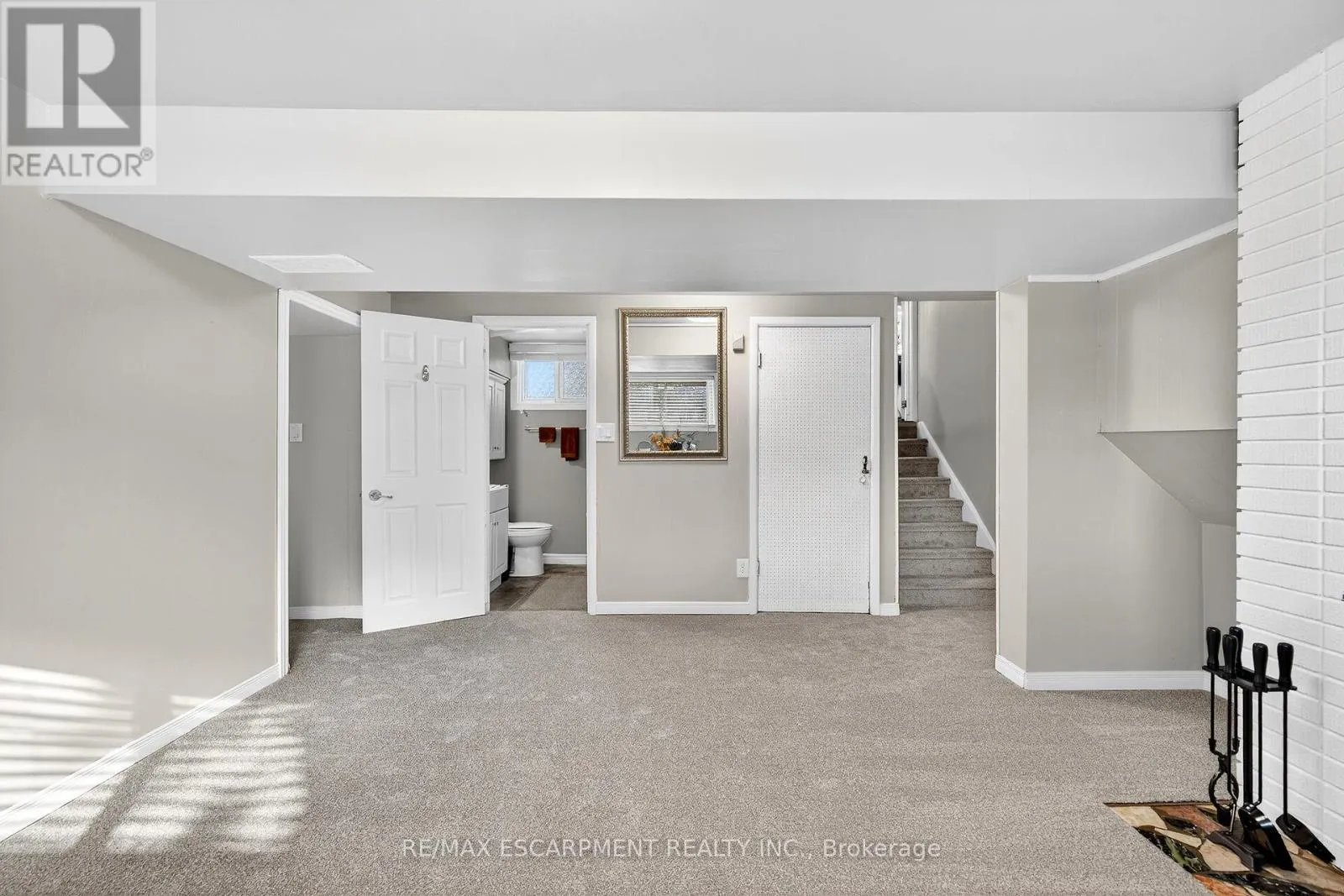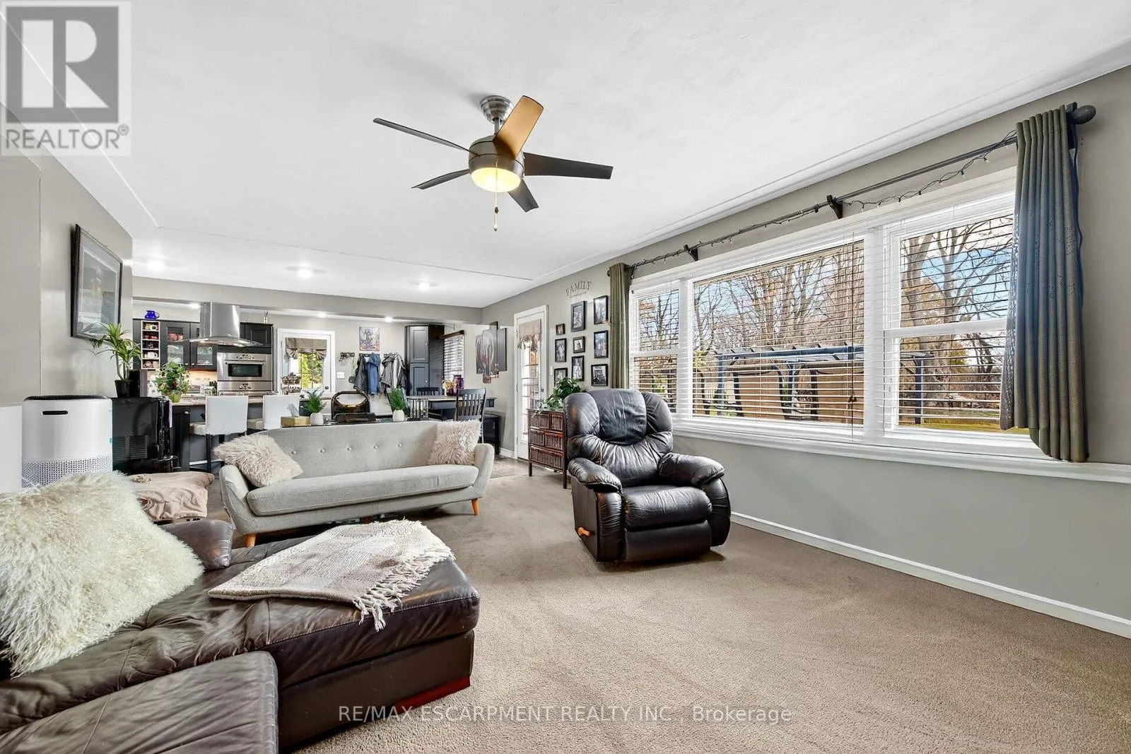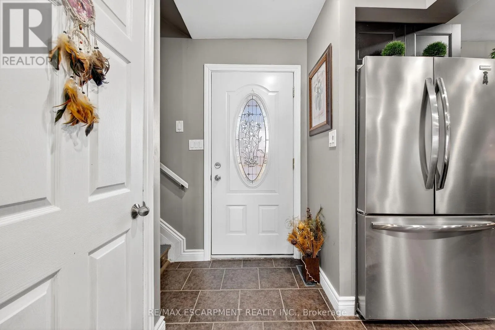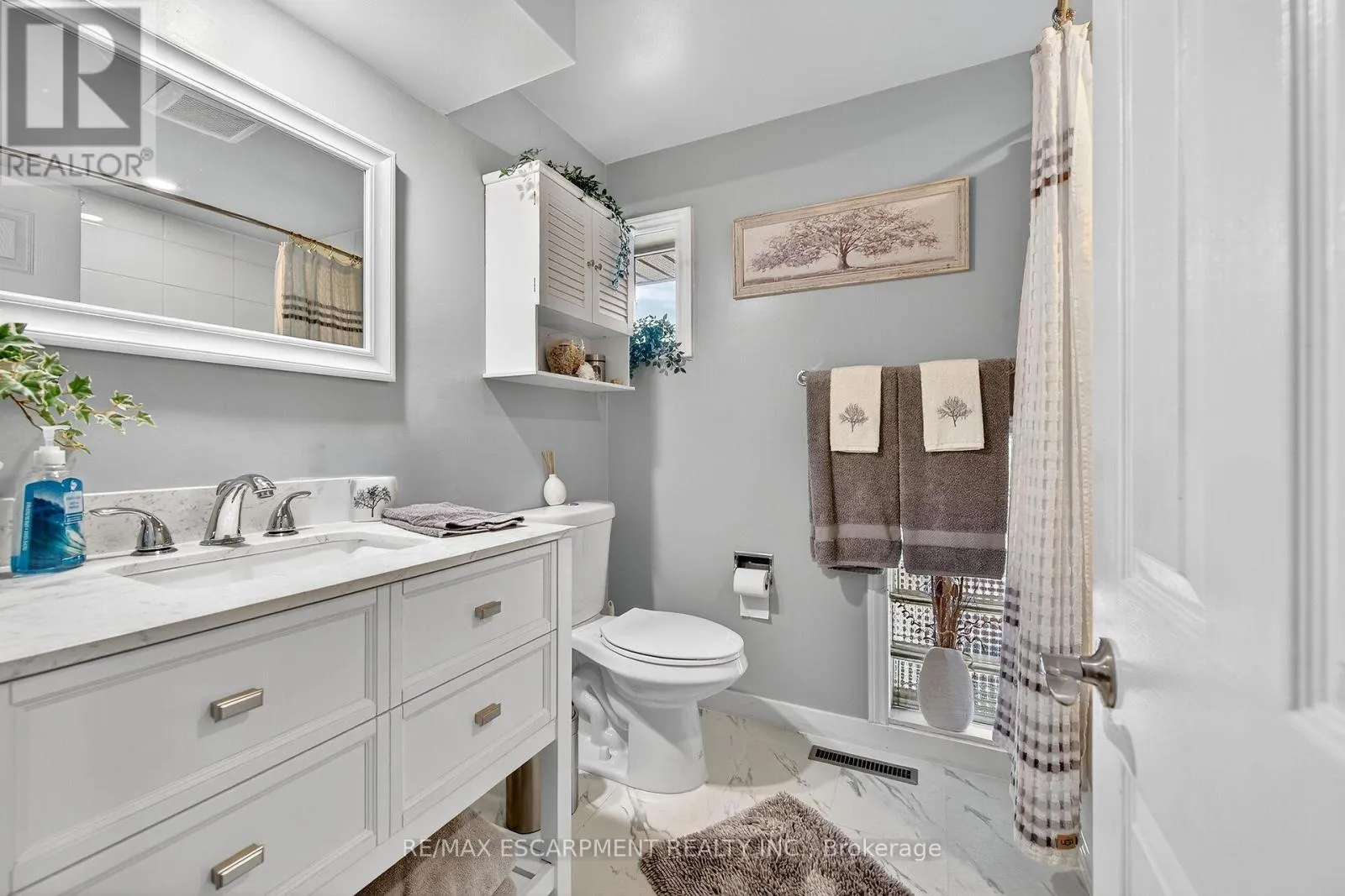 Cross Streets: Guyatt Rd. ** Directions: WHITE CHURCH RD E TO TRINITY CHURCH. Beautifully presented, Exquisitely updated 3 bedroom, 2 bathroom Sidesplit situated on picturesque 100' x 218' mature lot on sought after Trinity Church Rd. Great curb appeal with all brick exterior, welcoming front walkway leading to covered porch, attached car port, tastefully landscaped, & entertainers dream back yard with recently updated composite deck overlooking calming country views. The flowing interior layout features close to 2000 sq ft of well designed living space highlighted by gourmet kitchen with oversized eat at island, S/S appliances, tile flooring, & backsplash, formal dining area leading to patio, spacious living room, 2 large upper level bedrooms, & updated primary 4 pc bathroom. The finished basement includes rec room, 3rd bedroom, additional 3 pc bathroom, laundry room, & storage area. Conveniently located minutes to Hamilton amenities, restaurants, shopping, schools, parks, & easy access to Red Hill, Linc, QEW, & 403. Upgrades throughout include modern decor, flooring, & fixtures, kitchen, decking, roof shingles - 2019, hi eff N/Gas furnace & A/C. Rarely do properties in this location come available for sale in the price range! Perfect home for all walk of life. Shows well - Just move in & Enjoy! Experience Hannon Country Living at its Finest! (id:27476)