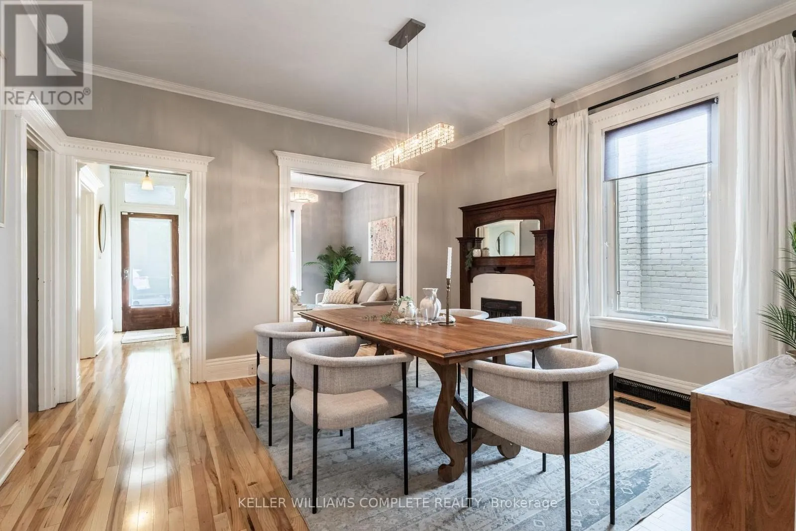 Cross Streets: Queen/Hess. ** Directions: Queen to Duke. Welcome to 198 Duke Street, a standout property in Hamilton's sought-after Durand neighbourhood. Set on an impressive 161-foot deep lot, this gorgeous home offers a private, cottage-like retreat while keeping you at the center of vibrant city life. With generous outdoor space, mature landscaping, and classic homes nearby, it combines the comfort of a sizable lot with the energy and convenience of the city, lively streets, and everything the neighbourhood has to offer. The expansive backyard is truly exceptional for a central location, offering a lush oasis with mature trees, a tranquil water feature, and a spacious wood deck. This generous outdoor space provides flexibility rarely found downtown, including rear parking for two vehicles, a new sliding gate, and plenty of room to add a garage or ADU. Inside, this charming 1.5-storey century home balances timeless character with modern comfort, showcasing exposed brick, high baseboards, an ornate fireplace mantle, pocket doors, and a mix of hickory and oak flooring. Contemporary updates include refreshed cabinetry, stainless steel appliances, stylish tilework, glass-enclosed showers, and upgraded lighting. The bright main floor features a welcoming living and dining area, a bedroom/office with a large closet, a spacious kitchen with ample storage, a large 4-piece bathroom, and laundry. The second level offers two additional bedrooms with generous closets and a second 4-piece bathroom. Leave the car at home in this walkable neighbourhood! With enhanced public transit options, close proximity to shops and services, and the energy of an active urban setting - all while enjoying the privacy of an unusually deep lot. Walk to Locke Street, Hess Village, GO Transit, St. Joseph's Hospital, parks, and more. A rare opportunity to enjoy a spacious lot, central location, and the best of urban living in one of Hamilton's most desirable neighbourhoods! (id:27476)
