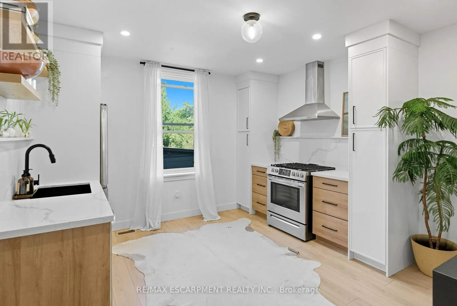 Cross Streets: Barton. ** Directions: Barton Street to Bay Street. Welcome home to 249 Bay St. N, a beautifully updated, all brick, 1870 century home that blends historic charm with modern convenience. This home is full of character while offering all the updates buyers are looking for. Step inside to a bright and airy main floor featuring soaring ceilings, a large bay window, and spacious rooms. The brand-new kitchen is a true showstopper with quartz countertops, hardwood shelving, solid wood cabinetry, exposed brick, and new stainless steel appliances. Durable luxury vinyl tile flooring runs throughout, adding both style and practicality. Upstairs, you'll find two comfortable bedrooms and one 4pc bath, with the original third bedroom thoughtfully converted into a spacious laundry / dressing room - adding modern function without sacrificing style. Outside, enjoy a deep lot designed for entertaining, gardening, and relaxing - feeling like a private retreat with mature trees, fruit trees (apple, cherry, mulberry), and multiple zones for lounging and playing. The upper yard is fully fenced with a charming exposed brick backdrop, while the lower fenced yard is perfect for pets or relaxing under the trees. Located in a family-friendly community, you'll love being just steps from Bayfront Park, the marina, lakefront trails, the West Harbour GO Station, trendy restaurants, shops, and schools. This home is a perfect balance of historic charm and modern upgrades. Don't miss your chance to own a piece of Hamilton's history in one of its most convenient and vibrant neighbourhoods. (id:27476)