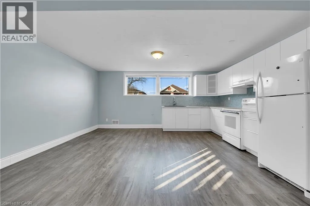 Upper Wellington Street - McElroy Road East - Dana Drive LOWER SUITE (BASEMENT) FOR RENT ONLY. Humongous lower suite/basement available for lease. Huge windows with lot of natural lights. Renovated-updated 2 bedrooms, 1 newer bath, eat-in kitchen, in suite laundry, living room, and lot of storage space. Up to 2 tandem parking spots available. Separate Entrance to the basement. Located on mature East Hamilton Mountain area near Norwood Park School, Walmart, Canadian Tire, Parks, Mohawk College and walking distance to stores/shopping. Minimum 1 y lease, 1st and last deposit, letter of employment, recent 4 pay stubs, references, rental application, credit check (Full report Equifax) and ID. No smoking of any kind. Not pet friendly. Looking for quite/responsible tenant who is going to take care of property like its their own. Available for April 1st. Tenant responsible for 40% monthly utilities. Pictures taken before current tenant took possession. Pickleball/ badminton and basketball court available for tenants use as well. RSA. (id:27476)