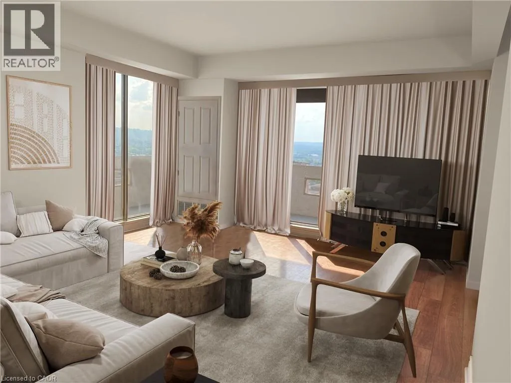 corner of Jackson St. and Caroline St. South The Bentley, sought after condo in the heart of Hamilton Durand neighbourhood. This unit offers many desirable features; 9 ft. ceilings, 2 baths, 2 bedrooms, each with a walk-in-closet, master bedroom has ensuite bath with separate jetted tub and shower, in-suite laundry and underground parking for two mid-size cars. Enjoy city views from ceiling to floor windows or the 2 balconies. Brand new windows were installed in 2025. The building is well maintained and provides a fitness facility & party room with kitchen. It is walking distance to shopping, dining, theatre, transit, Go Station and all downtown amenities. (id:27476)