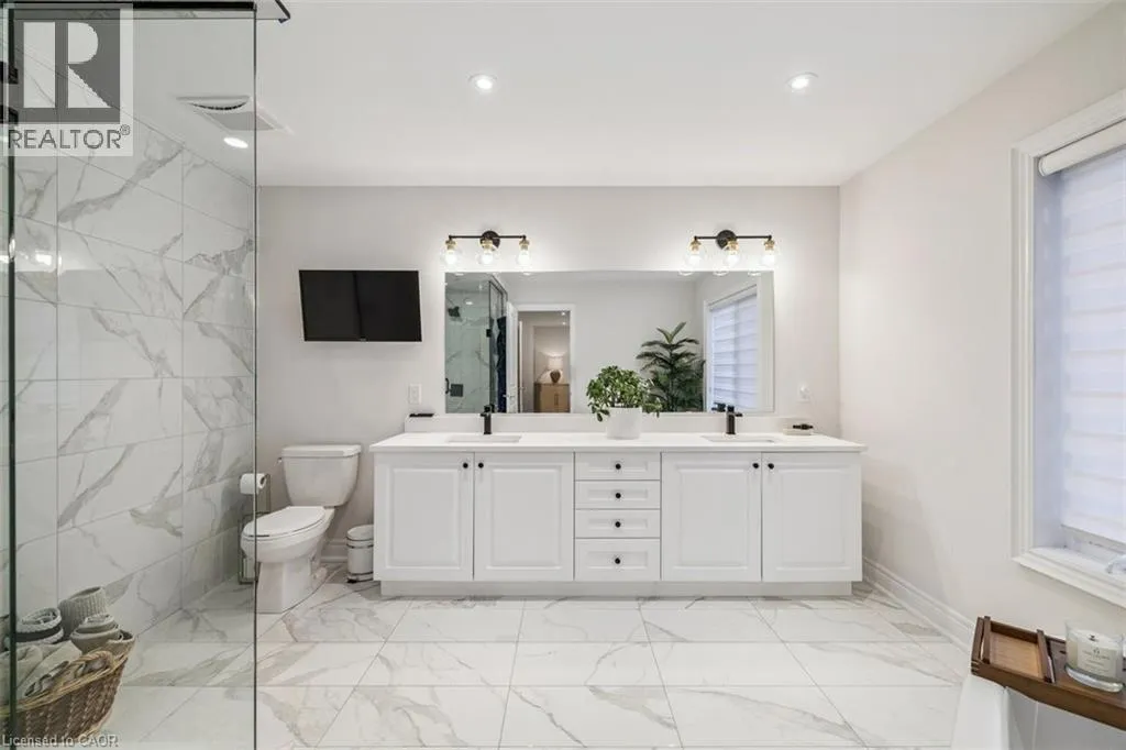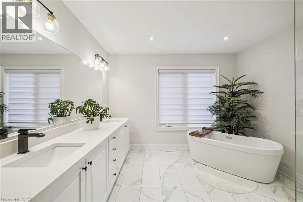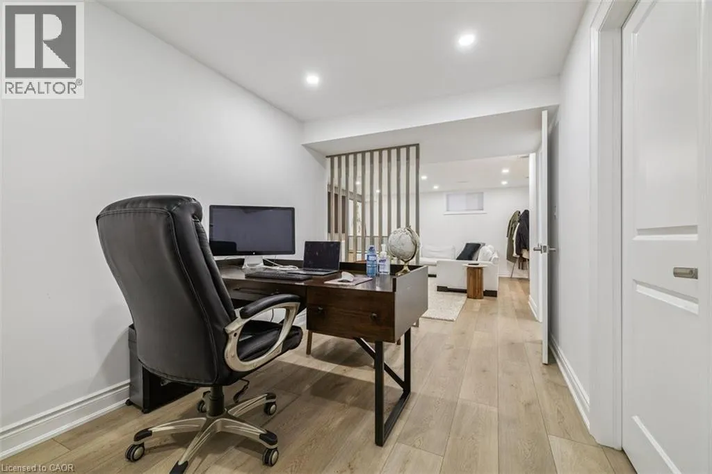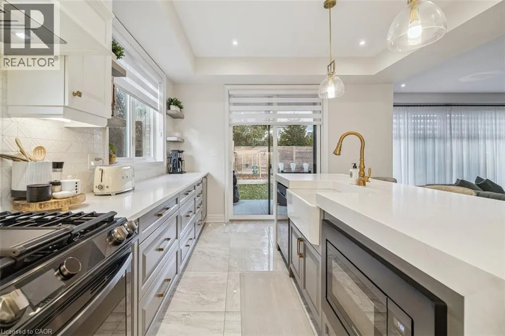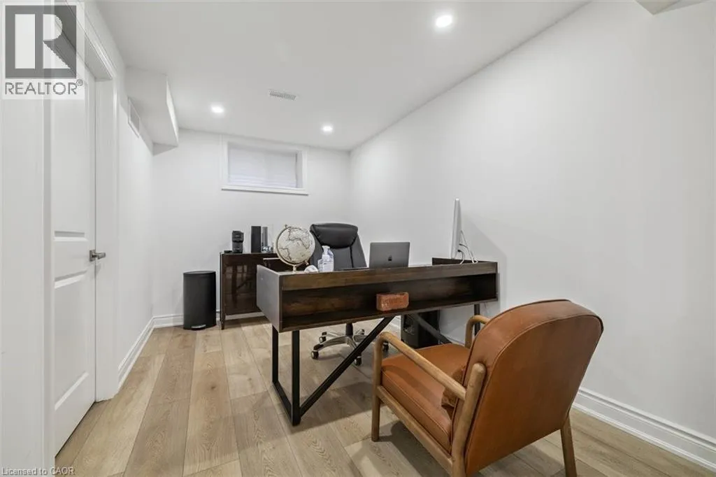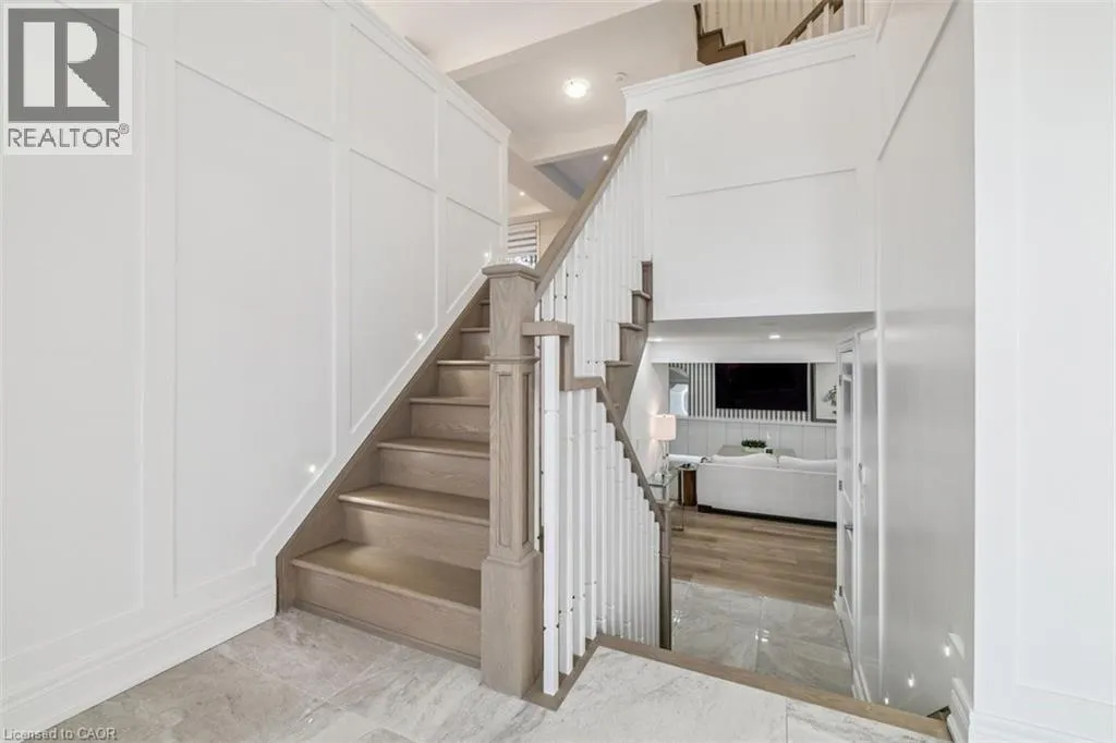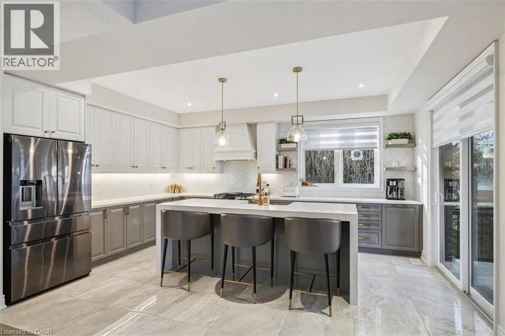 South on Dicenzo Dr from Stone Church. East on Cielo Court Welcome to this exceptional four-year-new DiCenzo build offering over 3000 sq ft of total living space! Nestled on a private court, the property captivates immediately with pristine curb appeal, including a newly completed interlocking-stone driveway. As soon as you enter into the spacious foyer, itâs clear no upgrade has been overlooked. The open-concept main level features an elegant dining room with floor-to-ceiling windows and a walkout to the front balcony. The chefâs kitchen is beautifully appointed with premium appliances, abundant cabinetry, endless upgrades, and a versatile oversized front closet ideal for a dream pantry. Sliding doors lead to a covered porch perfect for summer entertaining. Floor-to-ceiling windows continue in the living room with double sliding French doors, custom built-ins, and a gas fireplace. A private powder room completes this level. The staircase with built-in lighting leads to three generously sized bedrooms. Bedrooms two and three share a Jack-and-Jill bathroom, and a dedicated laundry area adds convenience. The primary suite is a true retreat with dual walk-in closets and a luxurious five-piece ensuite. The lower level, with a separate entrance from the double-car garage, has been newly finished to include a secondary living area with custom built-ins, a three-piece bathroom, and an office or potential fourth bedroom with an egress windowâideal for extended family or guests. Outside, the backyard is designed for relaxation and entertainment with a covered porch, expansive fully fenced yard, and dedicated play area. This home is truly move-in ready and offers an exceptional lifestyle. Book your private showing today! (id:27476)