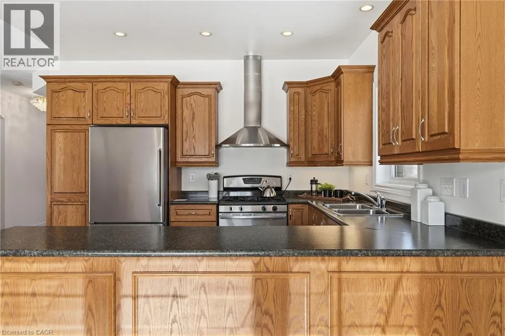Rymal Road West, between Upper Paradise Rd and Garth St Beautiful & spacious bungalow located in the highly sought-after West Mountain neighbourhood bordering Ancaster, perfect for those seeking one-level living without sacrificing space. Offering over 2,000sqft of living space on the main level, this custom-built home by original owner is truly a rare find and showcases quality craftsmanship and finishes throughout. Be welcomed by a bright foyer with high ceilings and an extra-wide hallway leading to generous principal rooms. The main level features a sun-filled living room with fireplace and walk-out to the backyard, kitchen with breakfast area, separate dining room, primary bedroom with walk-in closet and 5pc ensuite, second bedroom, 4pc bath, and convenient main-level laundry. Main level has been freshly painted and features quality marble & hardwood flooring throughout. The partially finished basement includes a 4pc bath and offers endless possibilities for additional living space, multi-generational living, or recreation. Situated on an impressive 60 x 166 ft lot with a private fenced yard, double-car garage, and driveway accommodating up to 8 vehicles. An unbeatable location close to shopping, restaurants, schools, transit, golf, trails, and more. (id:27476)