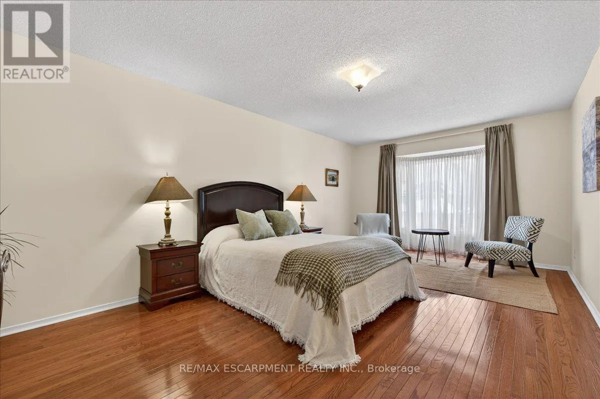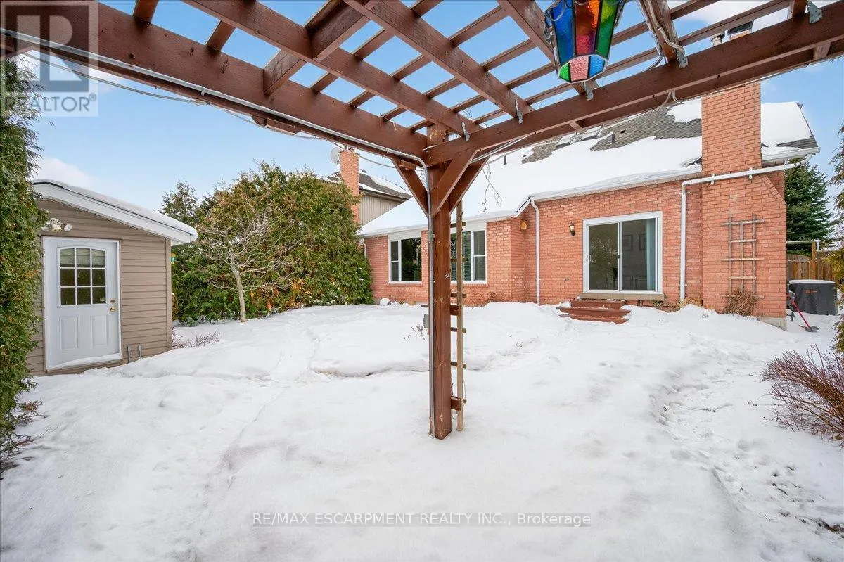 Cross Streets: Hwy 8 / Regalview. ** Directions: Take Highway 8 to Regalview to Goldcrest. This light-filled home offers space, privacy, and flexibility rarely found at one address. Located in Stoney Creek's sought-after Highway Valley / Dewitt neighbourhood, it sits between the Hamilton Escarpment and Lake Ontario-minutes to the QEW (without the noise) and a short walk to the Bruce Trail. Set on a quiet, tree-lined street with schools nearby, it's an ideal family location. The full brick exterior features four-car parking and an insulated double garage, plus a fully finished and heated backyard studio, perfect for creative hobbies. Inside, enjoy a bright, neutral layout with 5 bedrooms (4+1) and 4 bathrooms, a main floor laundry, and a fully finished basement suite with kitchen, ideal for extended family, guests, or a private teen retreat. The private backyard is framed by a 15-foot cedar privacy hedge, perennial gardens, and a gazebo with electrical access for lighting and music. Recent upgrades include a 2024 high-efficiency Trane gas furnace, triple-glazed kitchen and dining room windows, renovated bathrooms, primary walk-in closet cabinetry, and hardwood throughout the upper level. A welcoming community and a home that truly checks all the boxes. (id:27476)