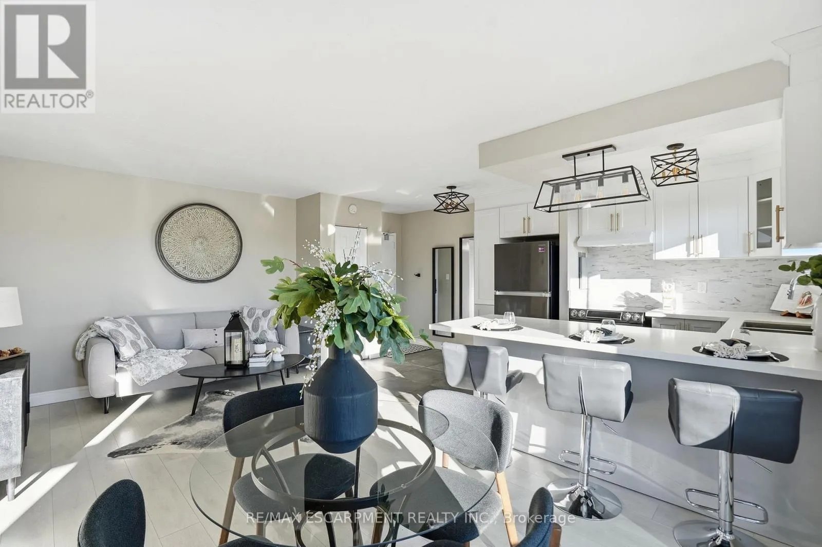 Cross Streets: Parkdale. ** Directions: Red Hill Valley to King St E exit. Welcome to this beautifully renovated condo apartment in the highly desirable Bartonville-Glenview neighbourhood of East Hamilton. Offering a comfortable, low-maintenance lifestyle, this move-in-ready unit with an owned storage locker, presents a rare combination of modern updates, peaceful surroundings, and exceptional views-ideal for first-time buyers, downsizers, or investors. The thoughtfully renovated interior features carpet-free living throughout, stone countertops, a functional breakfast bar, and one of the few units in the building with built-in air conditioning, creating a bright, modern space ideal for everyday living and entertaining. Large windows and a massive private balcony extend the living space outdoors and showcase an exceptional scenic view overlooking the tree-lined skyline of the Red Hill Valley Bowl, offering a peaceful green backdrop and a rare connection to nature seldom found in condo living. Set within a quiet, established community known for mature tree-lined streets and pride of ownership, Bartonville-Glenview offers an ideal balance of urban convenience and access to nature. Enjoy nearby green spaces, including Red Hill Bowl and scenic walking and biking trails throughout the Red Hill Valley. Commuters will appreciate easy access to major routes including the Red Hill Valley Parkway, the LINC, QEW, and Highway 403, making travel across Hamilton and into the GTA efficient and stress-free. Public transit, shopping, restaurants, and essential amenities are all nearby along King Street East, Queenston Road, and Centennial Parkway. Surrounded by parks, schools, and community services, this location offers a peaceful residential setting enhanced by stunning tree-lined valley views, while remaining minutes from downtown Hamilton, Stoney Creek, and major employment hubs. A fantastic opportunity to own in a well-established East Hamilton neighbourhood known for its accessibility, natural surroundings, and lifestyle appeal. (id:27476)