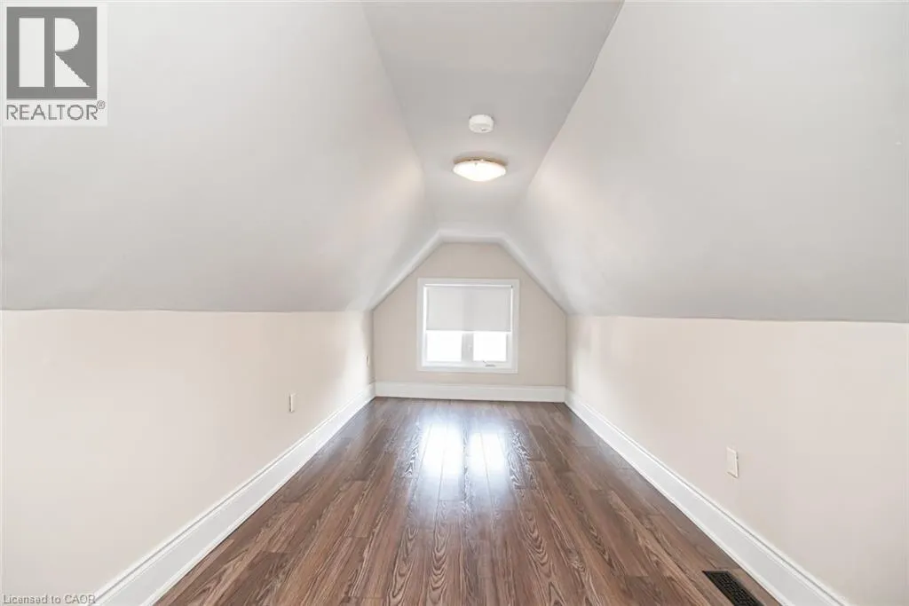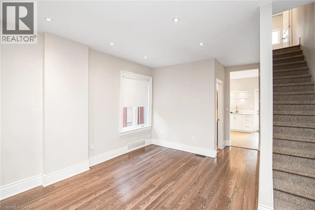 Main Street West right on Queen Street South ,right on Hunter Street Fully renovated 2.5-storey detached home for lease in the heart of Hamilton, perfectly suited for a professional tenant, including healthcare workers. This bright open-concept main floor features a spacious living and dining area with large windows and abundant pot lights. A stylish 3-piece bathroom, and an updated kitchen with quartz countertops, stacked laundry, and a walkout to a fully fenced backyard. The second level features three well-sized bedrooms and a 4-piece bathroom, while the finished attic provides two additional rooms, ideal for guests, a home office, or extended family. The lower level offers an unfinished basement with walkout access to the backyard, great for storage or a hobby area. Laminate flooring runs throughout the home for easy maintenance and a clean, modern look. Located on Hunter Street, just a short distance to Locke Street shops and cafés, Hamilton GO Centre, public transit, and major city amenities, with convenient access to several downtown hospitalsâmaking this an attractive option for medical and other professionals seeking a comfortable home in one of Hamiltonâs most desirable neighborhood's. (id:27476)