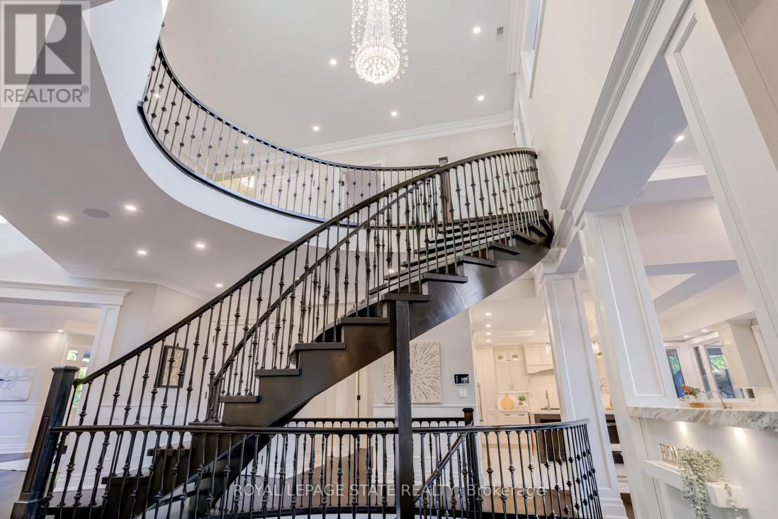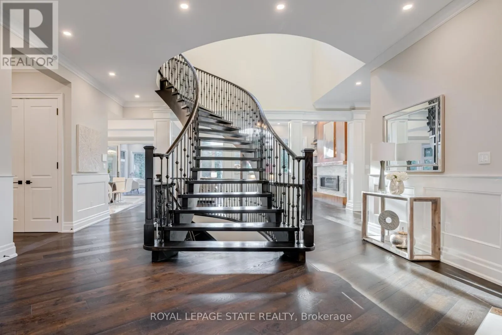 Cross Streets: Terrence Park Drive / Lloymin Avenue. ** Directions: Jerseyville Road to Lloyminn Avenue to Terrence Park to McGregor Crescent. This multi-generational luxury dream home blends timeless design with superior craftsmanship, offering over 8,850 sqft. of finished living space with 7 bedrooms and 8 bathrooms on a 135-ft-wide lot in Ancasters prestigious Oakhill neighbourhood. Surrounded by mature trees and estate homes, the property showcases two separate garages, parking for 20+ vehicles, professional landscaping, and a commanding architectural façade. Inside, a 21-ft grand foyer with curved staircase and custom millwork sets an elegant tone, complemented by wide-plank hardwood, porcelain tile, and abundant natural light from oversized windows. The main level offers formal living and dining rooms, a private office, powder room, and one of two primary suites with backyard walk-out. At the heart of the home, a soaring family room with floor-to-ceiling windows connects to a gourmet kitchen featuring top-tier Thermador appliances, a servery, walk-in pantry, and a heated four-season sunroom with in-floor heating. Upstairs are four generous bedrooms, each with its own ensuite and heated floors, plus a convenient laundry room and a spectacular primary retreat with gas fireplace, dressing room, and spa-inspired 6-pc ensuite. A covered terrace with artificial turf extends the living space outdoors. The finished lower level offers incredible versatility for extended family living with a separate entrance, two bedrooms, two bathrooms, recreation room with gas fireplace, kitchenette, and a sound-isolated home theatre room that can be separated from the rest of the basement. The private backyard provides multiple patios under mature trees, with professional renderings available for a future pool, hot tub, and full landscaping. Smart-home features include Control4 automation, security system, 400-amp, dual furnaces & ACs, HRVs, and central vacuum with hide-a-hoses. A rare opportunity to own an Oakhill estate that combines sophistication, space, and modern functionality for todays luxury lifestyle. (id:27476)
