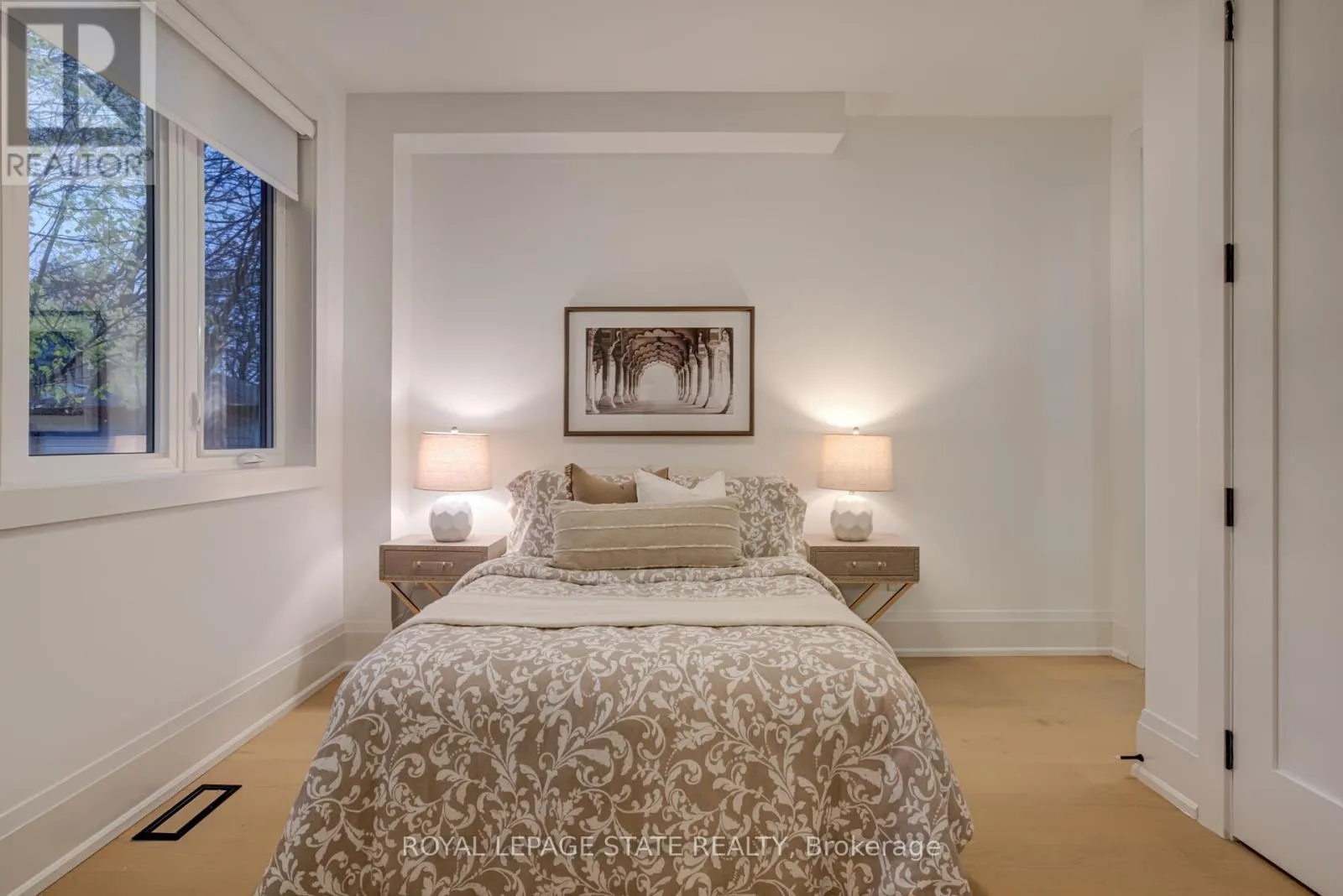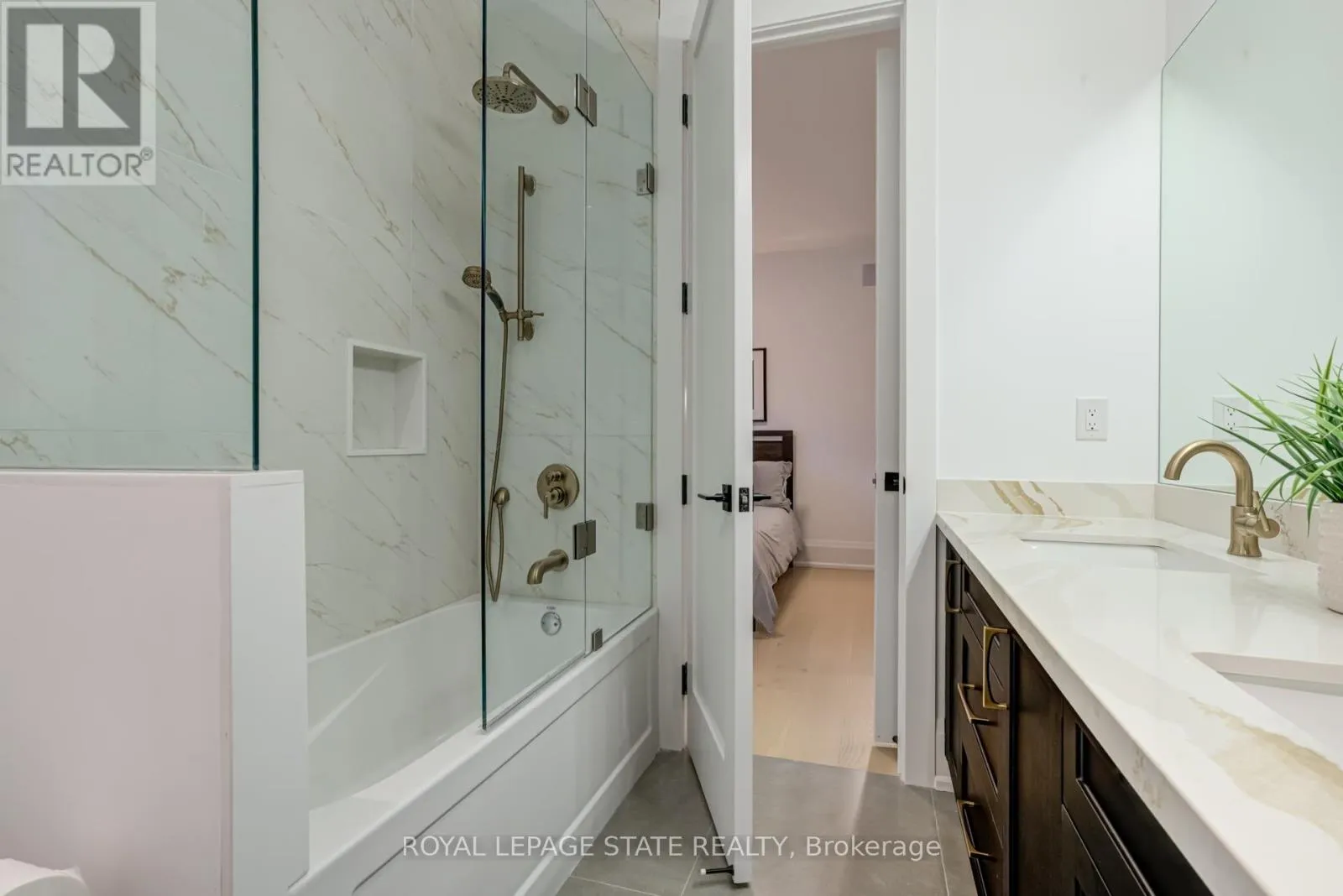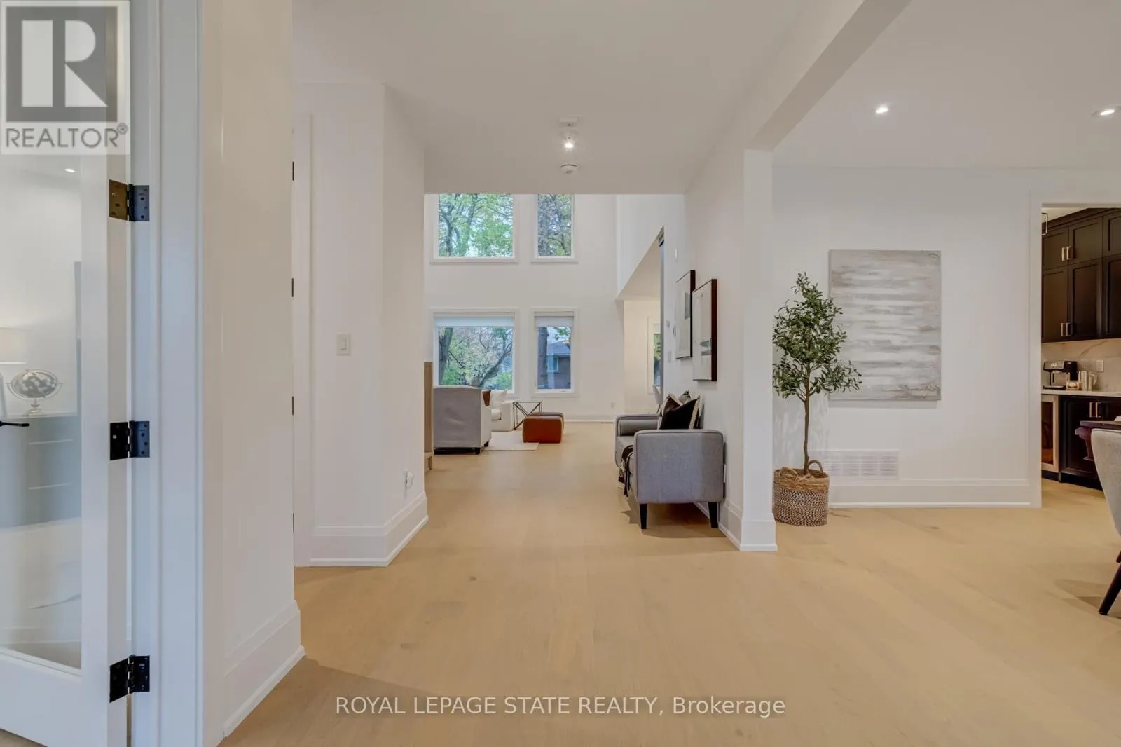 Cross Streets: Fiddlers Green. ** Directions: Fiddlers Green to Cumming Court. Crafted with exceptional attention to detail and completed in 2025 (Tarion warranty), this custom two-storey luxury home offers nearly 6,000 sqft. of finished living, 5+1 bedrooms, 6 total baths, and a contemporary transitional design blending sophistication with family-friendly functionality. Situated on a 75 x 105 ft lot in Ancaster's Nakoma neighbourhood, it features striking curb appeal with a stone-and-stucco exterior and a 2.5-car triple tandem garage. Inside, soaring 9 ft ceilings on all three levels, wide-plank white oak hardwood, 8 ft solid core doors, 9 baseboards, and oversized windows create a sense of grandeur. The 19-ft great room showcases floor-to-ceiling windows and a 42 gas fireplace flanked by custom cabinetry. A main-floor office with built-ins, formal dining room, and powder room provide elegant, purposeful spaces, while the dining table converts into a pool table for dual-purpose entertaining. The gourmet kitchen features black cabinetry, a 9' x 5' waterfall quartz island, full-slab quartz backsplash, champagne and honey bronze fixtures, Bertazzoni appliances, and a walk-in pantry and servery with black stainless-steel sink. Adjacent are the mudroom/laundry with garage entry and a main-level bedroom with ensuite. Upstairs, four bedrooms each have ensuite access, including a primary retreat with 10 ft tray ceiling, oversized walk-in closet, linear fireplace, and spa-inspired 5-piece ensuite with heated floors. The finished lower level offers 9 ft ceilings, oversized windows, sixth bedroom, full bathroom, linear fireplace, and endless possibilities. Additional features include radon mitigation, 200-amp service, hardwired security system, and DryCore subfloor. Outside, the back patio provides a starting point for a dream outdoor space, with a pre-approved building permit for an in-ground pool and gas lines for BBQ. Centrally located, this home offers walkability to schools, parks, shops, and quick access to Hwy 403. (See full list of features.) (id:27476)