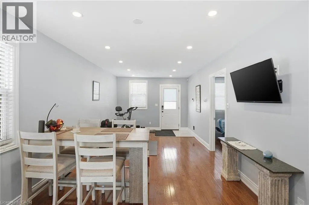 Parkdale Ave. N. & Roxborough Ave. Welcome to this beautifully maintained, turnkey bungalowâperfect for first-time home buyers or those looking to downsize. Pride of ownership shines throughout, with a thoughtfully manicured exterior and a bright, inviting interior. The main level features great natural light, a functional layout, two comfortable bedrooms, and a full 4-piece bath. The kitchen offers timeless maple cabinetry, granite countertops, and plenty of workspace for everyday living. Downstairs, the fully finished basement expands your living space with a 3-piece bathroom, ideal for a rec room, home office, or guest area. Step outside to a landscaped backyard oasis complete with a canopyâperfect for relaxing or BBQing all summer long. Conveniently located close to public transit, shopping, dining, and all major amenities. A truly move-in-ready home in a fantastic locationâdonât miss this opportunity. (id:27476)