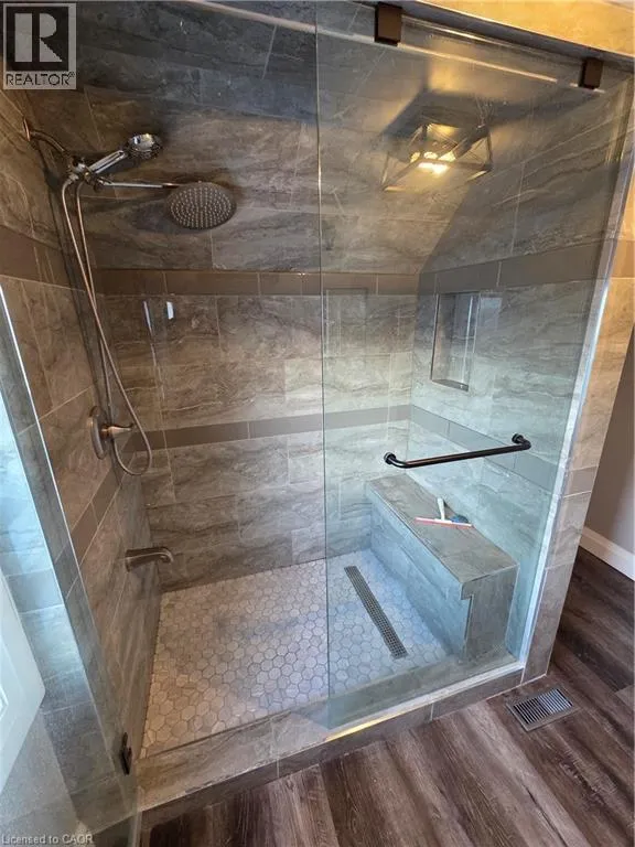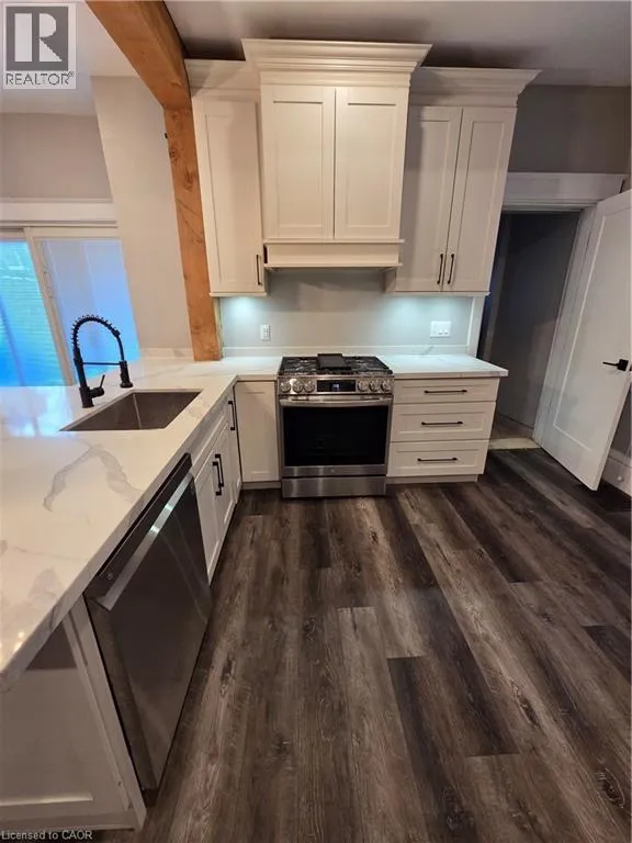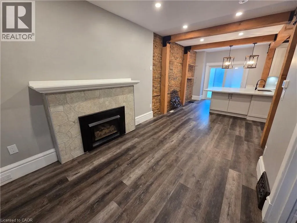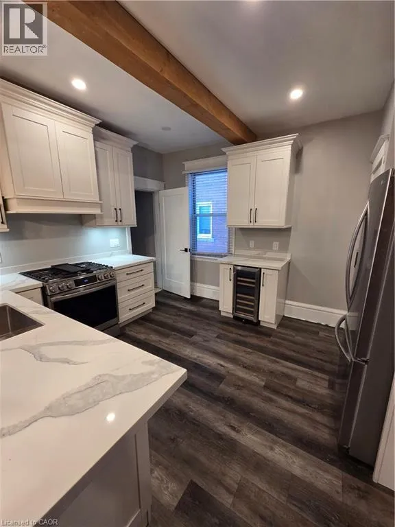 Main/Balsam Ave Gorgeous renovated unit in the desirable St Clair neighbourhood. Outside has covered porch, sun deck, and backyard use. Includes private parking. Brick and beam main floor with pot lights, natural gas fireplace, exposed brick, huge kitchen island with breakfast bar, SS gas stove, wine fridge and SS Fridge with main floor laundry/bathroom. Included is King Size bed, dresser, TV Mounted on wall and sunchairs in the front porch. Spacious renovated primary with another large renovated bathroom with glass shower & his/her sinks. Great location close to amenities, schools, Gage park and public transit. All usual documents requested. (id:27476)