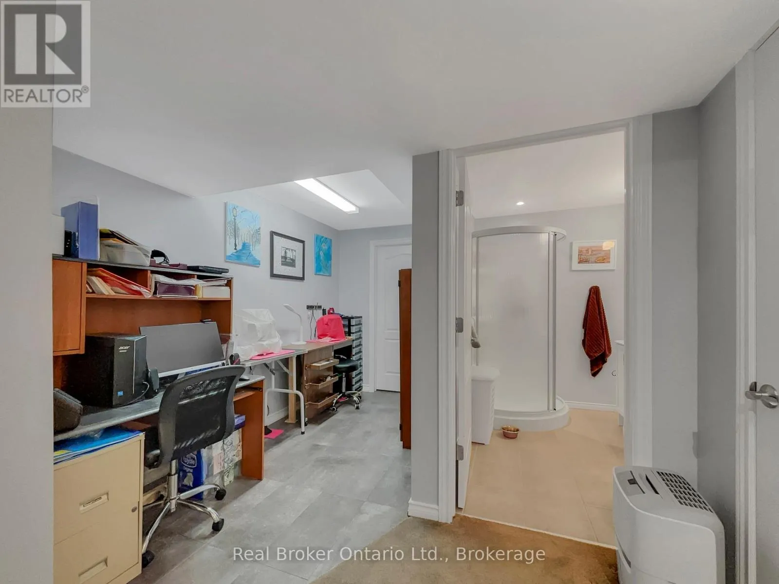 Cross Streets: MOHAWK RD W AND RICE AVE. ** Directions: MOHAWK LEFT ON RICE, LEFT ON CHEDMAC, RIGHT ON SOUTHRIDGE. Welcome to effortless living in this charming bungalow end unit, boasting exceptional curb appeal. This delightful home features an attached garage and a bright, open-concept main floor, complete with a spacious primary bedroom and a luxurious 4-piece bath. The versatile second room can serve as an additional bedroom or a home office. The kitchen, living, and dining areas flow seamlessly together, enhanced by 9-foot ceilings and leading out to a deck with an electric awning - perfect for relaxing outdoors. Convenience is key with a first-floor laundry room offering a sink and ample storage. The finished basement expands your living space with a generous rec room, sliding doors to the backyard, a 3-piece bathroom, an additional bedroom with a large closet, a cold room, and a versatile area suitable for an office or crafting. Recent upgrades ensure modern comfort, including fresh paint throughout, new kitchen counters, a ceramic backsplash, a Delta Workstation sink and faucet, and an upgraded exhaust fan vented outside. Most appliances are under two years old, and both first-floor bathrooms feature new toilets, vanities, and faucets. The backyard is enclosed with a newly installed cedar fence, and both the upper patio door and front bedroom windows have been replaced within the last three years. This wonderful starter home is ideally situated in a fantastic location, offering both comfort and convenience. Don't miss the opportunity to make it yours! (id:27476)