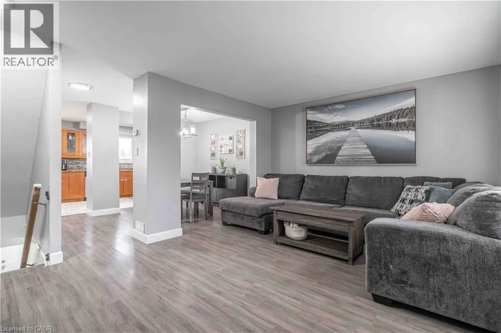 Upper Gage Ave to Beryl St Welcome home to this renovated and well-maintained end-unit townhome in a desirable and family-friendly neighbourhood. The open-concept main level features a spacious living room with a stylish electric fireplace wall, full dining area and large eat-in kitchen. The second floor features three generously sized, carpet-free bedrooms and a four-piece bathroom. Perfectly situated close to all major amenitiesâincluding schools, parks, restaurants, shopping, public transit, and highway accessâthis home truly has it all. Thereâs nothing left to do but move in! (id:27476)