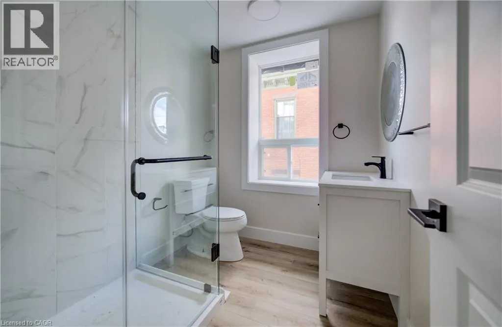 Welcome to 22 Grant, located in the heart of Hamiltons This stunning, newly renovated 1-bedroom, 1-bathroom unit offers a perfect blend of modern luxury and historic character. Housed within a beautifully restored white-brick property with bold black accents, this suite features an open-concept layout with wide-plank vinyl flooring, recessed lighting, and a ductless heat pump for year-round climate control. The brand-new kitchen is the heart of the homeee, crisp white cabinetry with a black sink, and modern appliances. The bathroom is a standout feature, offering a spa-like atmosphere with a marble and glass surround. Conveniently located near landmarks like J.C. Beemer Park and Hamilton General Hospital, Highway access, and Transit , this unit offers a fresh, turnkey living experience in a desirable community. (id:27476)