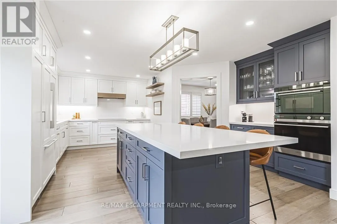 Cross Streets: -. ** Directions: GOVERNOR'S ROAD. NORTH ONHUNTINGWOOD AVENUE. RIGHTON WINDMILL PLACE. Welcome to this beautifully maintained and spacious home nestled in a quiet court in one of Dundas' most desirable neighbourhoods. Boastingover 3,000 sq. ft. of finished living space, this property offers an ideal blend of modern updates, functional design, and timeless charm. Stepinside to a large, flowing main floor layout-perfect for entertaining and everyday living. The heart of the home is the fully renovated kitchen(2022), featuring sleek cabinetry, newer stainless-steel appliances, and elegant finishes that are sure to impress. The main level also showcasesupdated hardwood flooring (2021), enhancing the warm and inviting atmosphere throughout. Upstairs, you'll find three generously sizedbedrooms and two full bathrooms, including a primary suite with ensuite privileges. The fully finished basement adds exceptional value, completewith a second full kitchen, spacious family room, an additional bedroom, and a full bathroom-ideal for in-law living, guests, or extended family.Located on a peaceful court, this home offers both privacy and convenience, just minutes from parks, schools, trails, and the vibrant downtownDundas core. Don't miss your chance to own this exceptional home in a prime location! furnace and ac 2025 (id:27476)