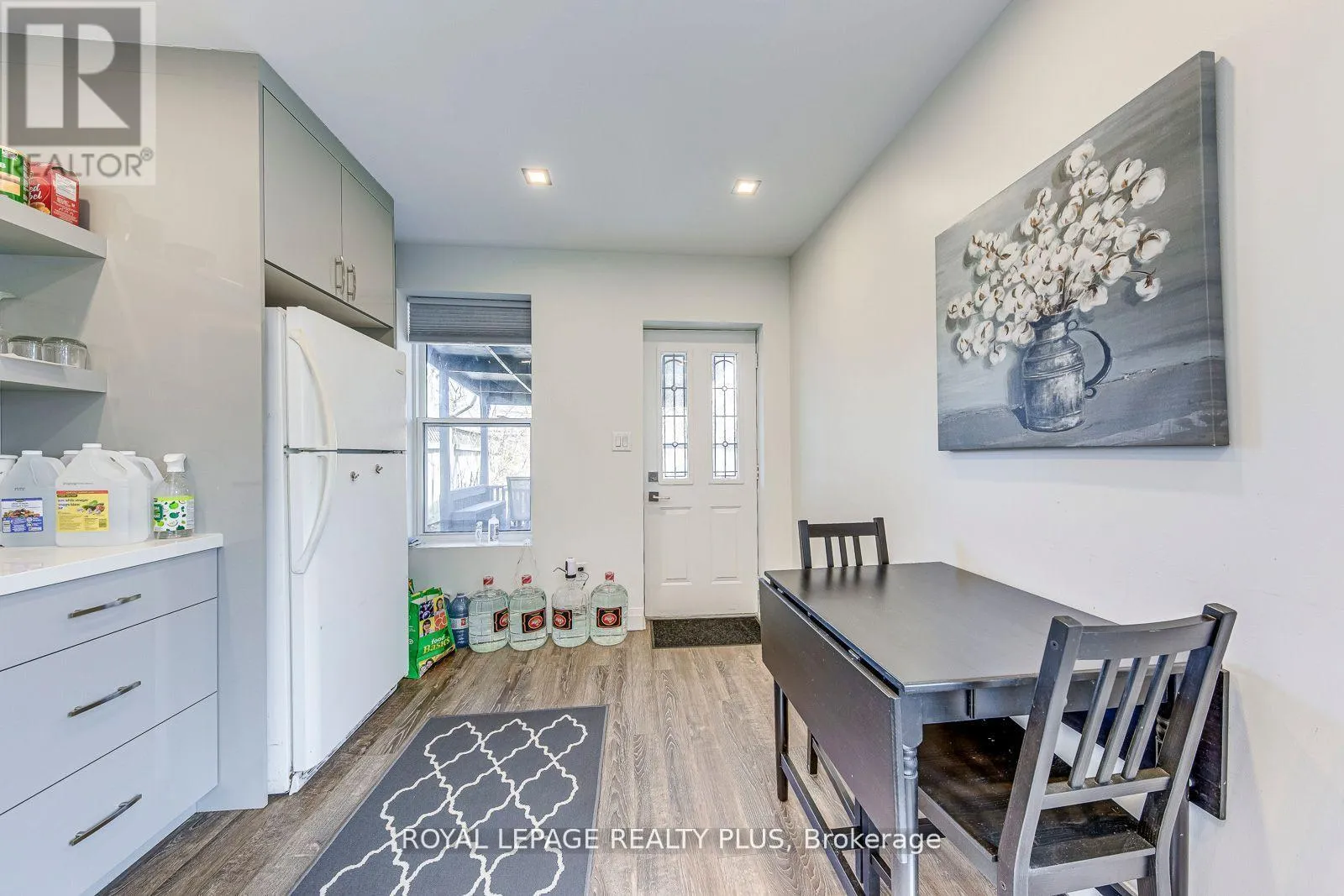 Victoria Ave / Wilson St This unique and versatile detached home functions like a duplex, offering two completely separate units with private front entrances ideal for multifamily living or a turn-key investment. The main floor features a sun-filled, open-concept living and dining area with soaring ceilings, a brand-new kitchen with quartz countertops, walk-out to a large fully fenced backyard, a spacious master bedroom, en-suite laundry, and a fully renovated shower. The upper unit includes an oversized master bedroom with office space, a second bedroom, a renovated kitchen, a bright, lounge-like living area, en-suite laundry, and an updated shower. With two-car parking and income already being generated, this property provides flexibility, space, and value in one. Whether you're looking to live in one unit and rent the other or invest in a fully rented property, this opportunity checks every box. Don't miss your chance with this one. (id:27476)