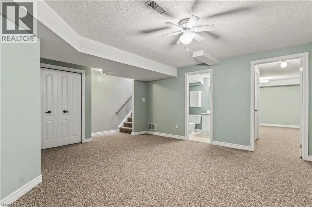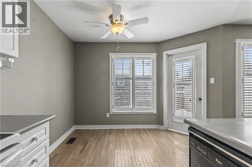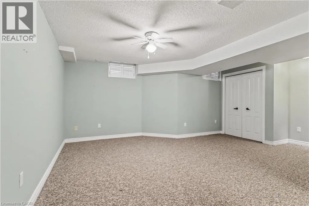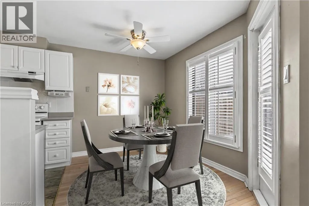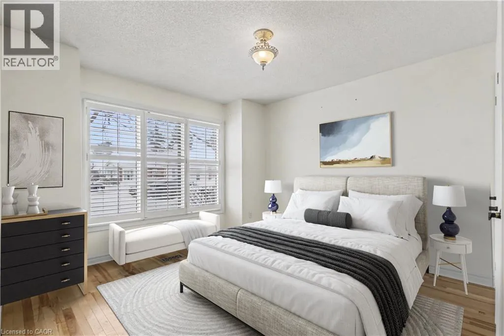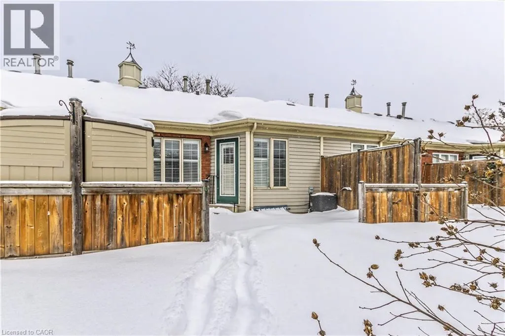 Fiddler's Green between Wilson and the 403 Perfect for 1st time buyers/ downsizing/ Snowbirds. this 1+1bedrm townhome is perfectly located between the Hwy and local shopping. Main floor family room with H/W floors, Gas fireplace, California shutter's. Full kitchen with outside entry to patio. Main floor bedroom with plenty of closet space, California shuttlers. Main floor 3 pce bath. Lower level is fully finished and includes Rec room, bedroom and second 3 piece bathroom. Low maintenance, easy living in a quiet complex. (id:27476)