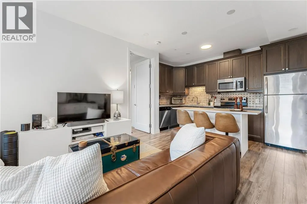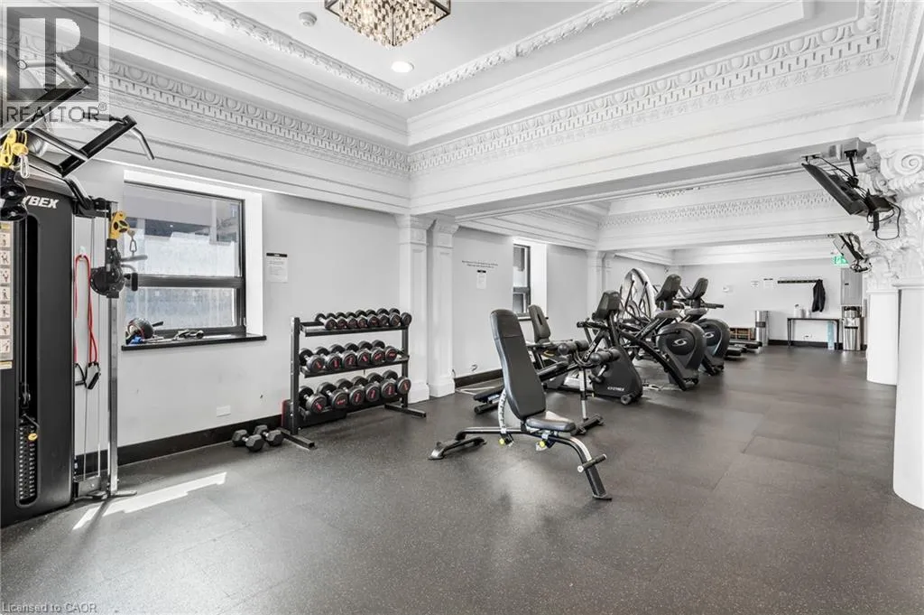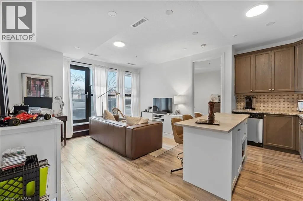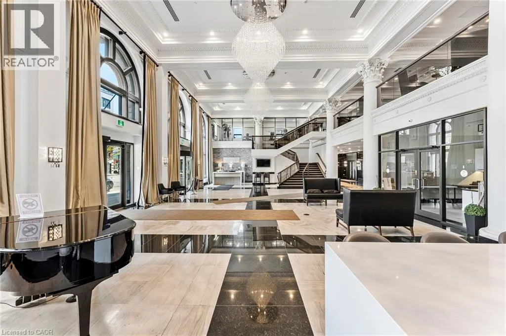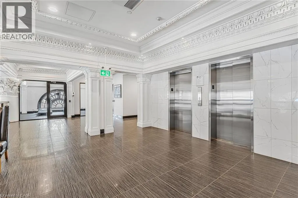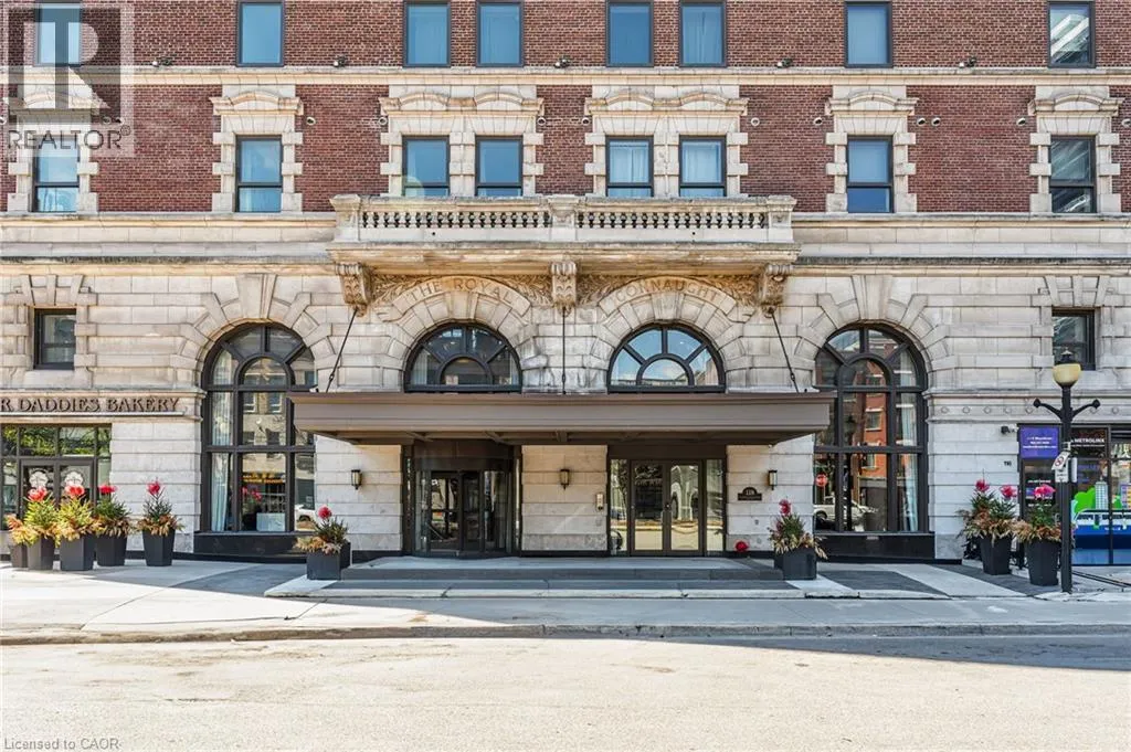 King Street East between Catherine and John Welcome to the iconic Residences of Royal Connaught, Hamiltonâs most prestigious and historically significant condominium address. This beautifully appointed, south/east-facing one-bedroom suite provides sweeping views of Downtown Hamilton and the Escarpment, and boasts a rare walk-out terrace â an ideal space for outdoor relaxation or entertaining. Designed with comfort and style in mind, the open-concept layout features a modern kitchen, granite countertops, extended-height cabinetry, and stainless steel appliances. Additional highlights include in-suite laundry, a spacious walk-in closet, one storage locker, and one owned parking spot. Perfectly situated in the heart of the city, this residence is just steps from Gore Park, Starbucks, the GO Station, and the vibrant shops and restaurants along James Street North. With close proximity to Bayfront Park and convenient highway access, this exceptional property provides an unparalleled urban lifestyle. (id:27476)