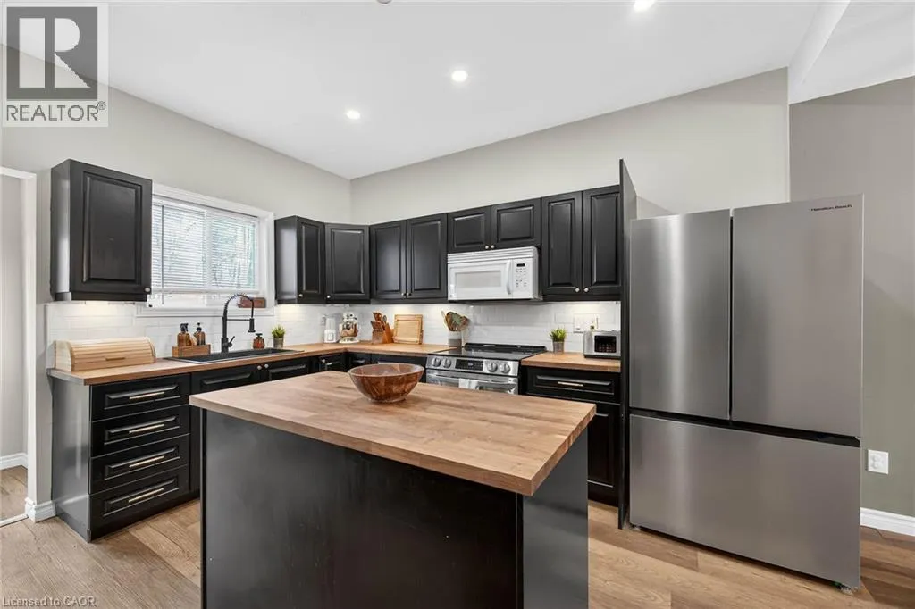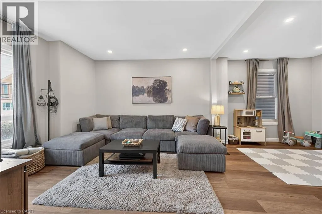 Sherman Ave S to Cumberland Ave Welcome Home! A fantastic opportunity ideal for first-time home buyers or those looking to get into a charming century home on a mature street in Central Hamilton close to Gage Park. This 1.5-storey offers, 2+1 bedrooms & 1 x 4pc bath, with a bright and inviting open-concept main floor ideal for everyday living and entertaining alike. Upon entry, youâre immediately welcomed into a spacious living and dining area that flows seamlessly into the updated kitchen, complete with a large island, ample storage, pantry/coffee bar, under-cabinet lighting, and newer appliances (in 2023 & 2025). Tucked away at the back of the main level is a 4pc bath and mudroom with access to the deck and fully fenced backyard which is great for kids, pets, gardening or entertaining. The second level features two bedrooms plus a bonus third room that is perfect as a bedroom, home office, nursery or guest space. The unfinished basement is currently used for laundry and storage and offers potential to be finished for additional living space and includes a walk-up to the backyard. Two private parking spaces. Recent updates include kitchen improvements, flooring, 2025 - fencing, some updated wiring, and more. Ideally located just a short walk to Gage Park, with easy access to public transit, schools, escarpment trails, and local amenities. Donât delayâmake this great house your home! (id:27476)