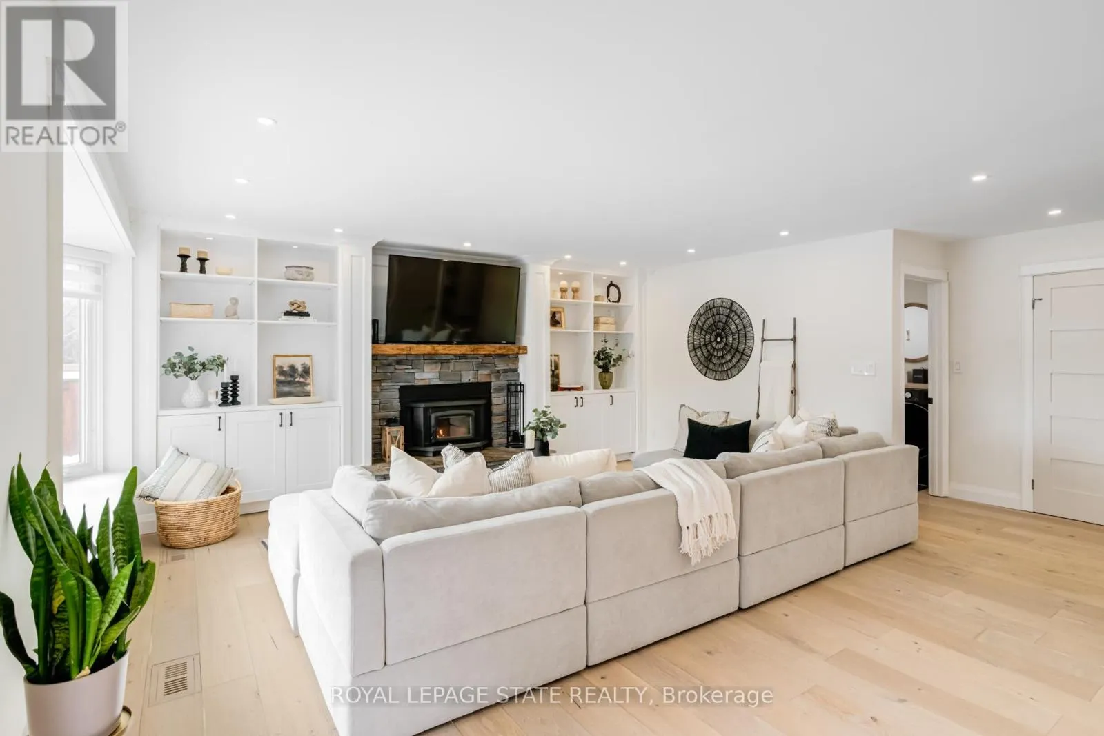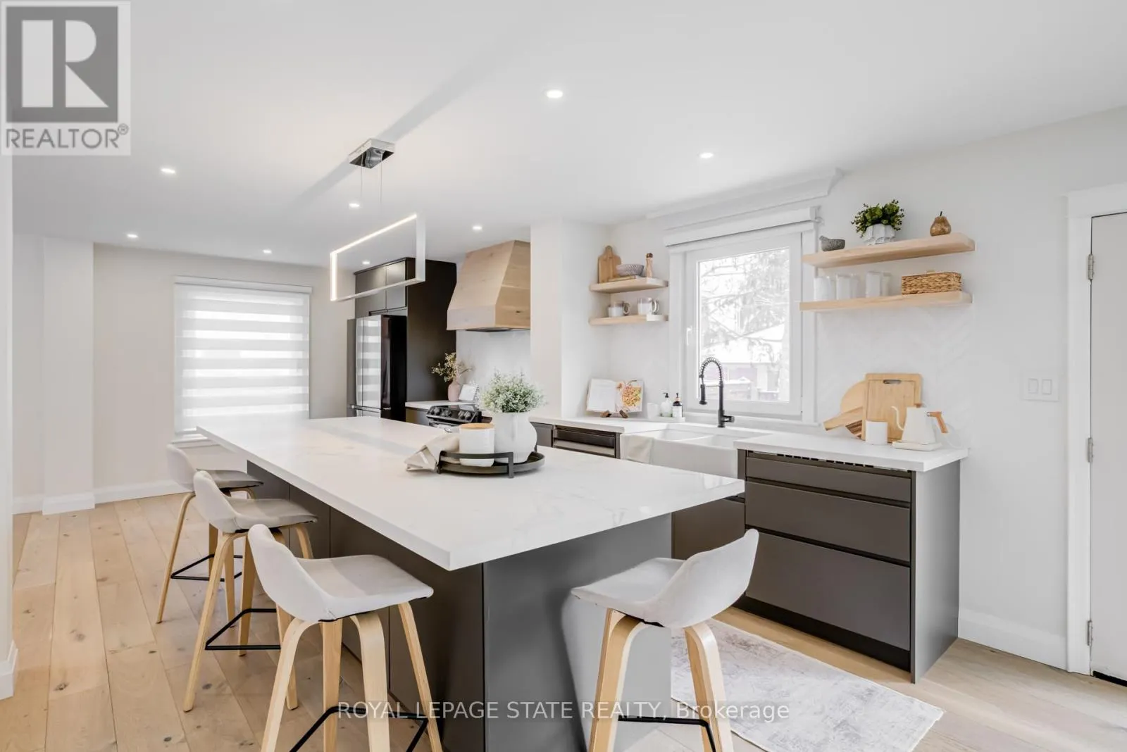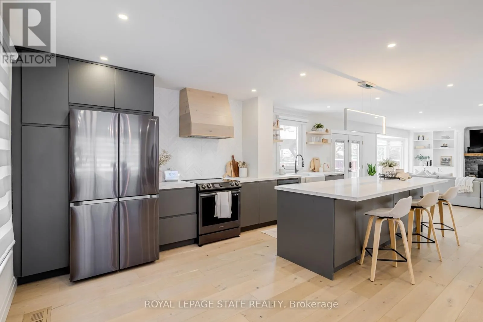 Cross Streets: Thomson Drive. ** Directions: Thomson Dr to Carl Cres. Ideally located on one of South Waterdown's most desirable streets in the Rockcliffe Survey neighbourhood. Set on a sprawling 75-foot-wide lot, this fully renovated designer two-storey home is just steps to escarpment trails, parks, schools, all of Waterdown's convenient shopping, dining, or service amenities, and it offers quick access to Highway 403, Aldershot, and the GO Station. Renovated from top to bottom and meticulously maintained, this stunning residence offers 4+2 bedrooms and 4 total bathrooms, with over 3,500 sqft. of thoughtfully designed living space. The main floor features a chef-inspired kitchen with custom cabinetry, quartz counters, and black stainless-steel appliances. Flowing seamlessly into a bright living area anchored by built-in shelving and a gorgeous wood-burning fireplace. The open concept layout is perfect for entertaining and everyday living. A large dining room, stylish powder room and laundry with inside entry from the garage complete the level. Upstairs, skylights flood the home with natural light. Four spacious bedrooms are complemented by a modern main bathroom with a double vanity, and elegant finishes. The primary suite feels like a private retreat, complete with a spa-inspired ensuite and a custom walk-in closet. The fully finished lower level features a separate entrance. There are two bedrooms (with egress windows), a full kitchen, bathroom, and spacious living area-ideal for extended living space, multi-generational living or an income generating suite. This home also features a unique heated studio located at the rear of the garage with access from both the laundry room or directly from the exterior-perfect for a home office, gym, or creative space. Additional highlights include engineered hardwood, custom millwork, modern lighting and remote blinds. Step outside to your own private oasis with a landscaped, pool-sized backyard, pergola, and fire pit-an ideal setting for relaxing or entertaining. (id:27476)