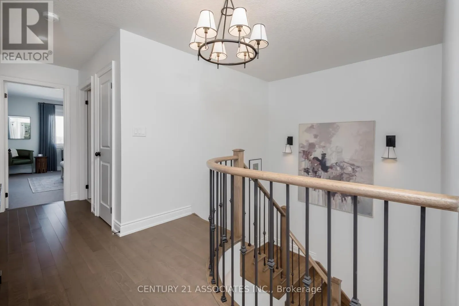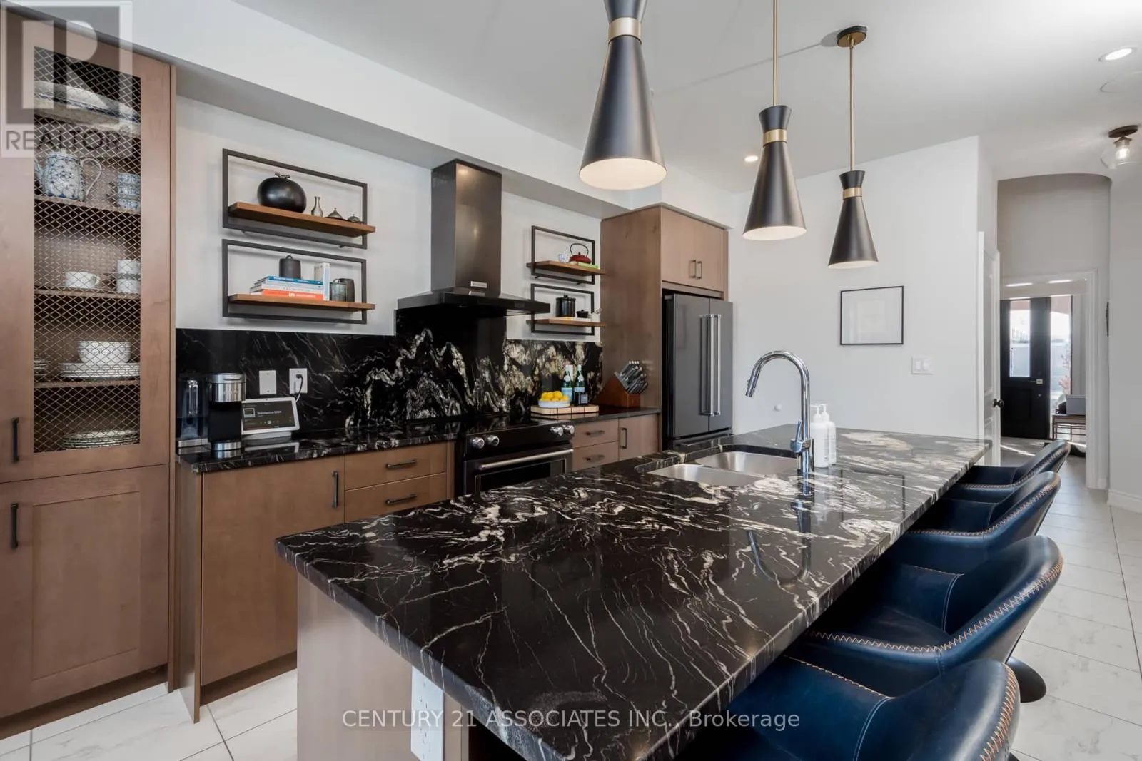 Cross Streets: Binbrook Road & Fletcher Road. ** Directions: Binbrook Road, South on Fletcher Road to McWatters. Welcome to this fabulous upgraded home which was originally the builder's model home! This home offers a true upscale feel with over 2400 sq ft of above grade living space plus the professionally finished basement. 9' ceilings on the main floor. The gourmet eat-in kitchen provides a real wow factor with granite counters and backsplash, a large centre island / breakfast bar, extensive cabinetry, full pantry/display cabinets with elegant wire mesh inserts, high-end lighting fixture and pendants. The kitchen breakfast area walks out to the extended custom deck (approx. 2 years), fully landscaped in 2024 with 4 trees, poured concrete front to back, French curbs on driveway, and fully fenced back garden and views of fields and farm buildings. The great room off the kitchen is ideal for entertaining family and friends with a gas fireplace, tray ceiling, and huge window overlooking the garden. The over-sized formal dining room with tray ceiling is currently being used as an additional sitting area. Solid oak stairs with wrought iron pickets lead to the second floor featuring four spacious bedrooms and the upstairs laundry room with laundry tub. The primary bedroom has a large walk-in closet and L-shaped ensuite with separate shower and freestanding tub. All bedroom closets have built-in closet organizers. The third bedroom has semi-ensuite access. The basement is finished with an open recreation area, separate den/office, 5th bedroom featuring 4 windows (2 large above grade, lookout windows), 3 piece bathroom, and a cold cellar. Recessed lights throughout are LED. The double garage has direct inside access and a storage loft. Recent fiberglass front door was installed. This home is immaculately maintained and was freshly painted. (id:27476)