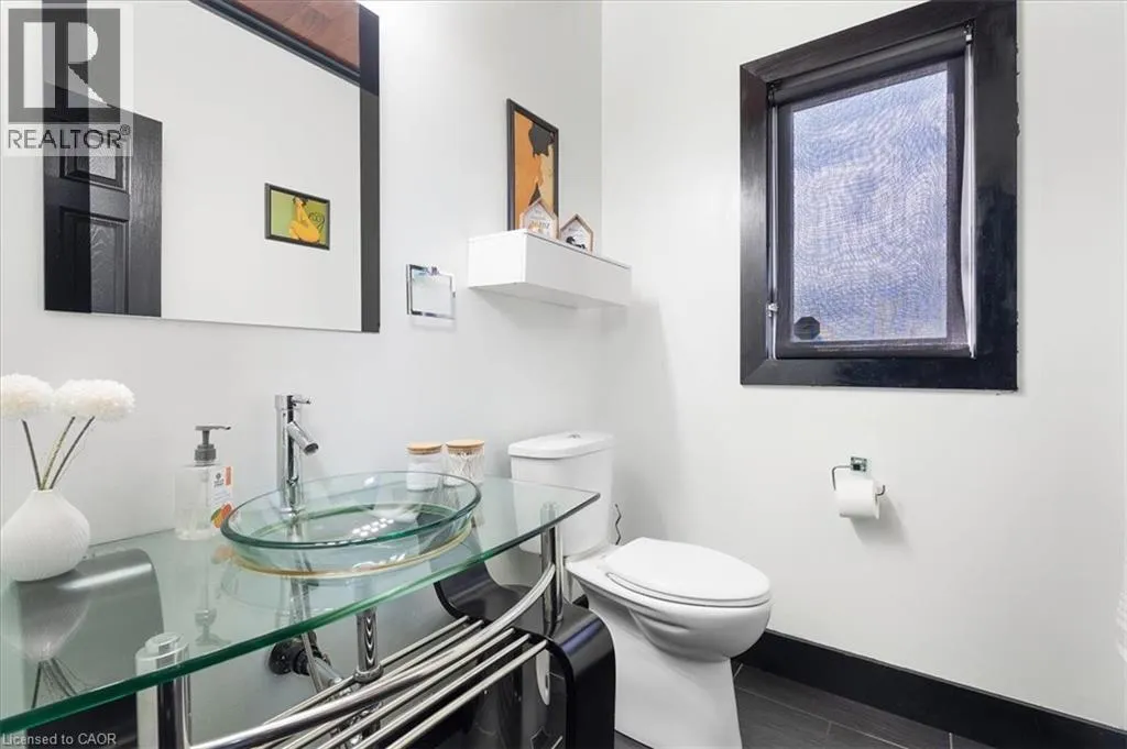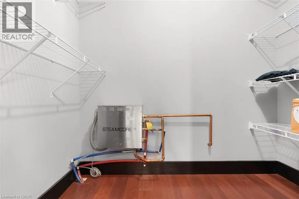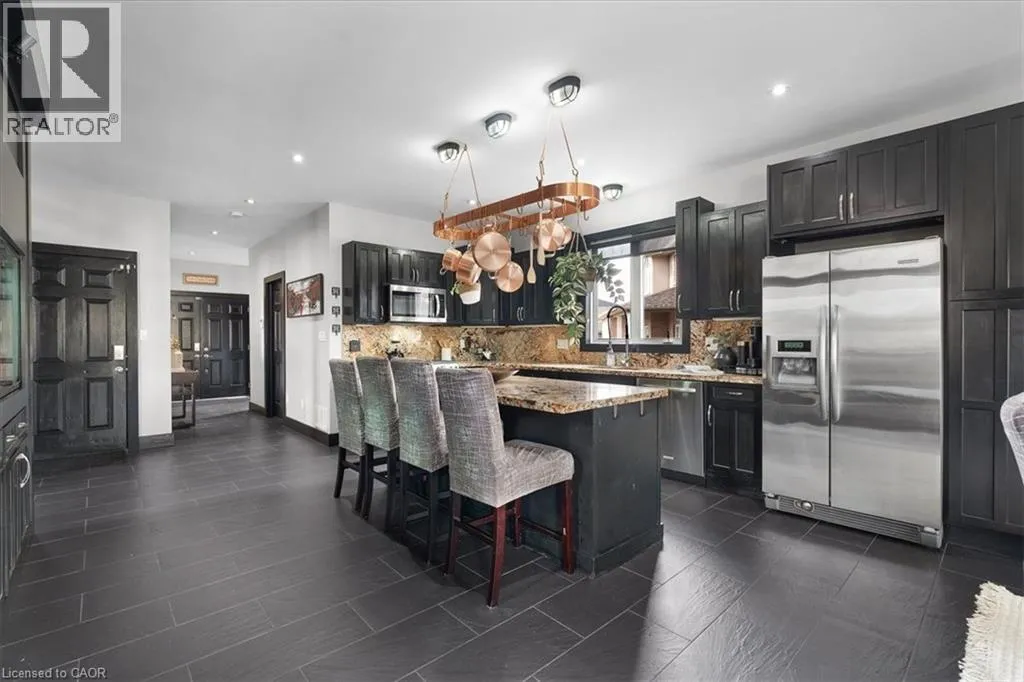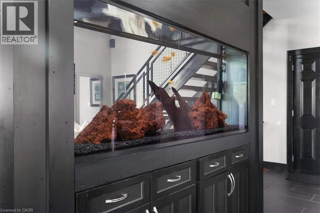 Winterberry Drive/Paramount Drive to Old Mud Street One-of-a-kind, only two owner custom home on a rare double lot in a quiet upper Stoney Creek court! This is the kind of property that rarely comes to market. Loaded with custom finishes, outdoor luxuries, and lifestyle upgrades inside and out. Winters have been spent skating on the backyard rink, and summers around the full brick pizza oven with chimney in the outdoor kitchen with Napoleon Prestige Pro 500 BBQ, fully wired with outdoor patio speakers, all set in a private green space. Sleek matching shed with electrical service and double doors featuring indoor/outdoor dog kennel. Integrated security system with LED lighting throughout the property. Step inside to a soaring 2-storey family room with a modern fireplace anchored by a fully plumbed 220-gallon aquarium, the stunning focal point and show piece of the main floor. The oversized kitchen easily fits a 12+ person table and flows into a spacious prep kitchen with granite counters and stainless steel appliances. A bold steel and wood staircase adds a cool industrial vibe. Upstairs, every bedroom has its own ensuite privilege. The main bedroom and ensuite bathroom feature a built-in surround sound system for a luxurious retreat. This home also includes a 104-bottle cantina with an in-wall security safe, Steam Core sauna, and a partially finished basement already equipped for a hair salon. Double car garage with EV charger, double driveway, and just minutes from schools, parks, shopping, movie theatres, and highway access. This isnât just a home, itâs an experience. Come see it for yourself. (id:27476)