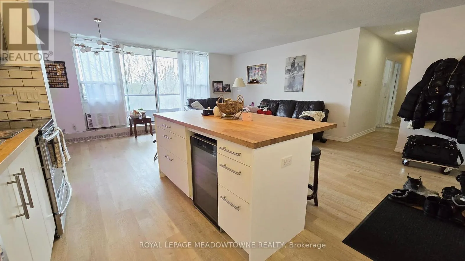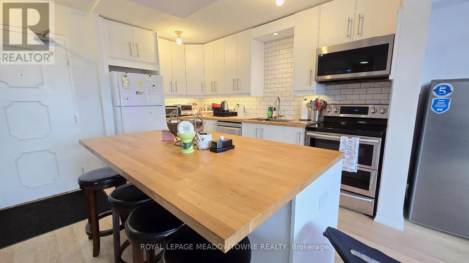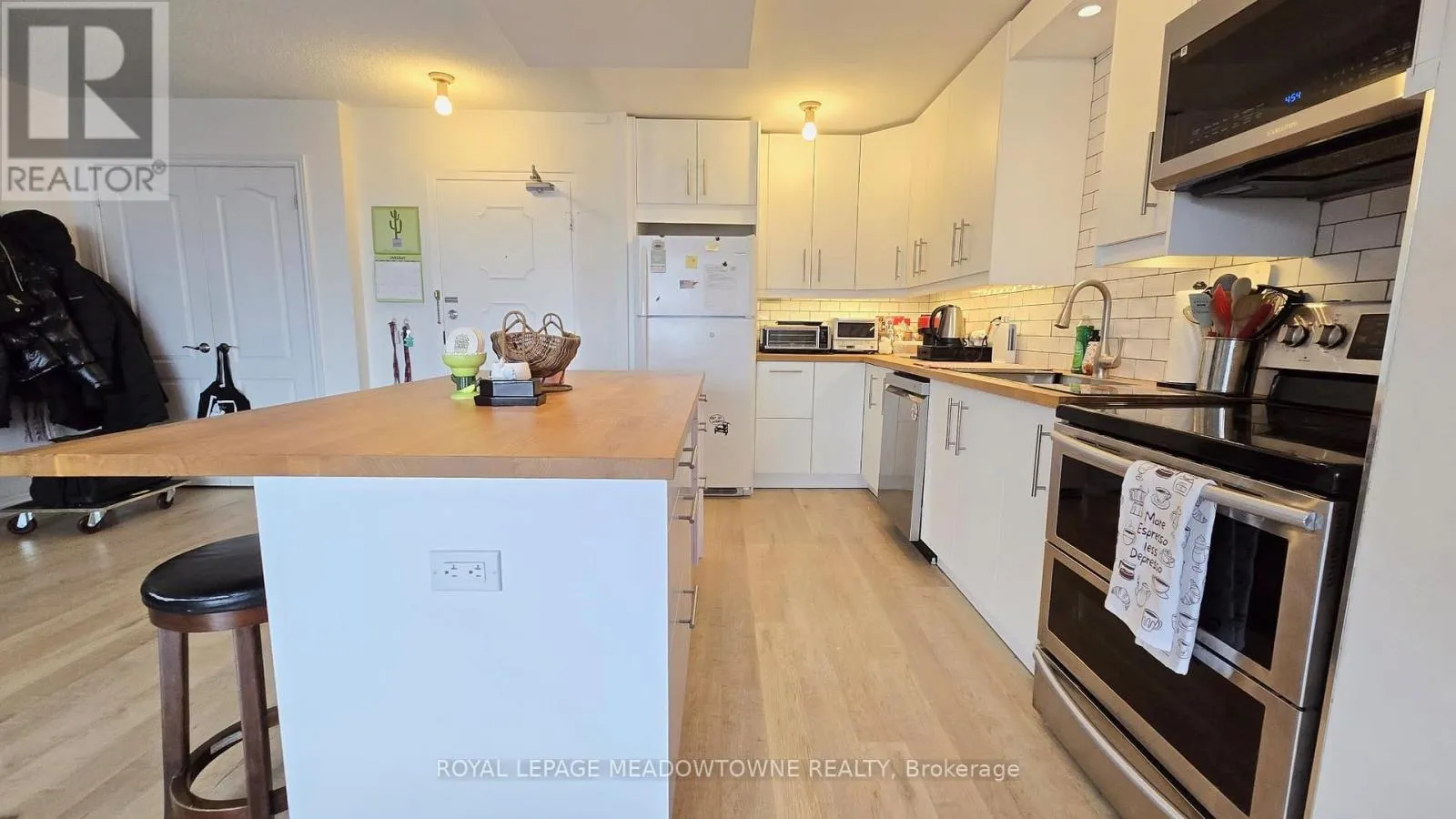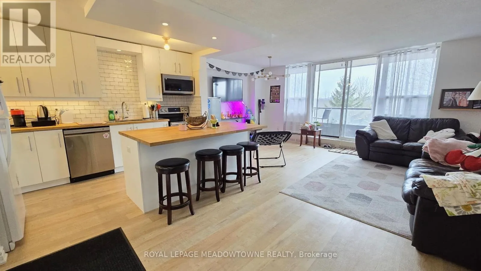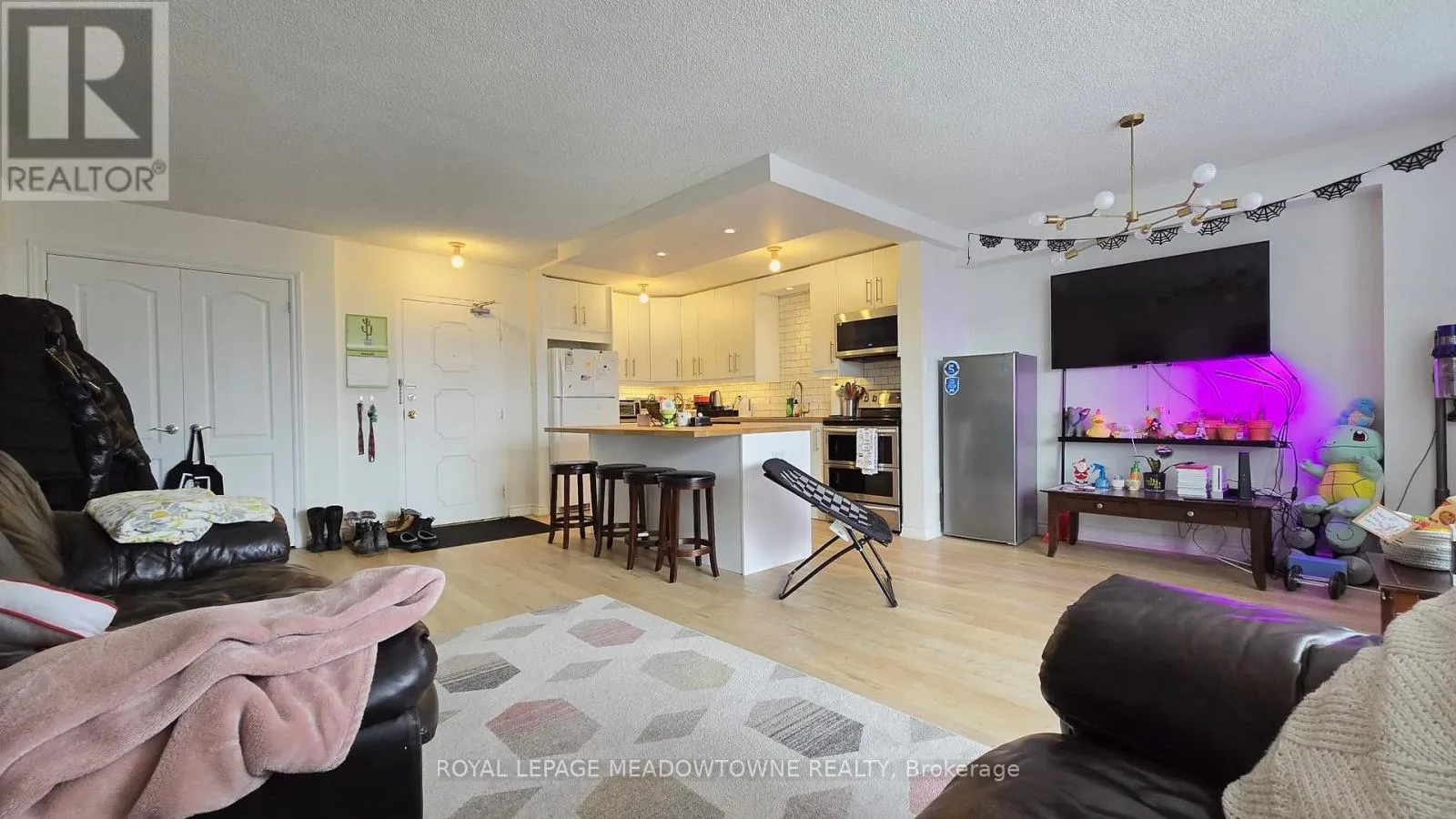 Main St W/Osler Dr This spacious and tastefully renovated condo comes fully furnished and is located in the highly sought-after Ainslie Wood West neighbourhood. This bright, west-facing unit offers high ceilings, a functional open layout, and a private balcony ideal for relaxing or entertaining. The modern kitchen features a breakfast bar, and the unit includes a spacious walk-in storage closet. Enjoy exceptional building amenities, including an indoor pool, sauna, party room, laundry facilities, and access to a beautifully landscaped private on-site park with BBQ areas and walking trails. Conveniently located with easy access to transit, shopping, cafes, parks, Highway 403 and McMaster University. This unit is a turnkey option, ideal for students or professionals. (id:27476)