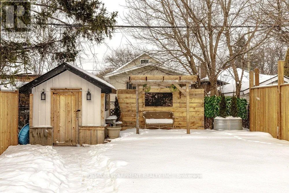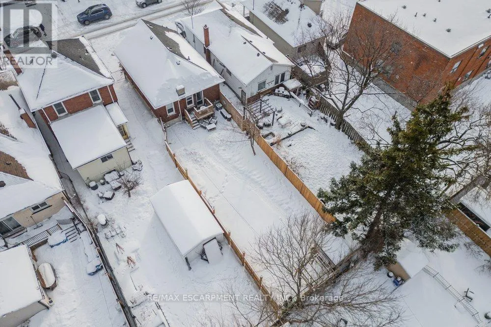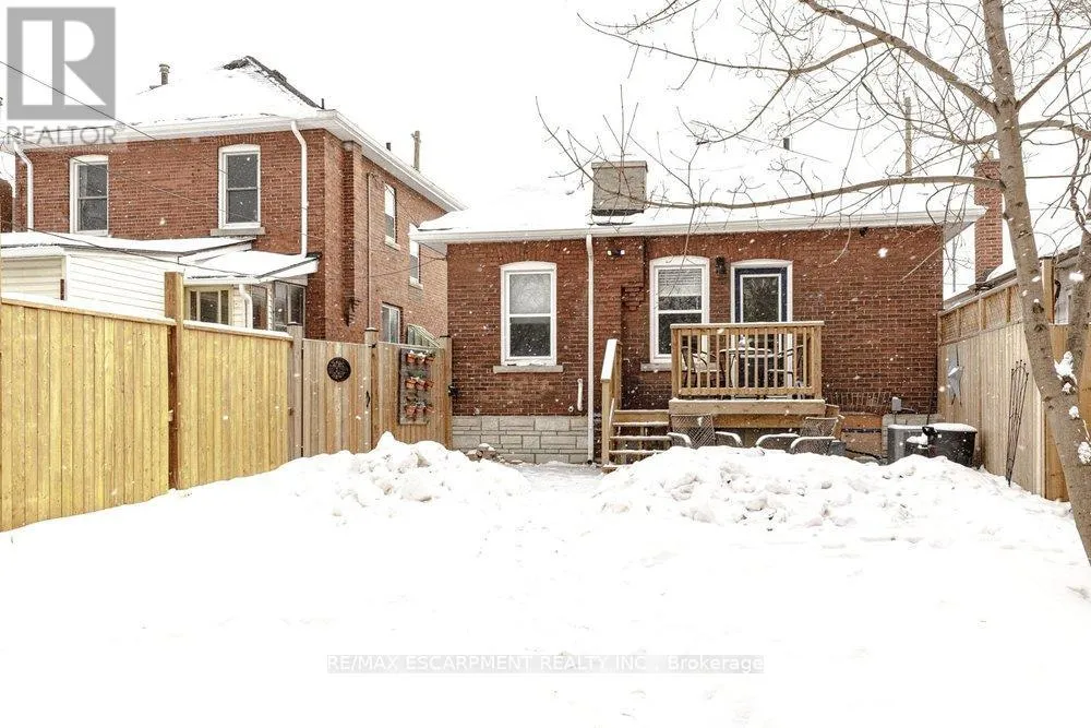 Main St E/Huxley Ave N Welcome to this fully finished, move in ready 3+2 Bed 2 Bath all brick bungalow - still loaded with historic charm. Located in a family-friendly neighbourhood, walking distance to parks & schools, close to major amenities, highway access and public transportation. The main floor features a cozy living room with ornamental mantle and separate dining space with parquet floors and crown molding. The bright kitchen offers plenty of white cabinetry contrasted by butcher block counter tops and custom shelving, as well as stainless steel appliances and a walk out to your brandnew back deck. 3 spacious bedrooms and a stunning 3PC bathroom complete the main level. The newly & fully finished basement offers the possibility of in-law living with back entrance, 2 additional bedrooms, a beautiful 4PC bathroom and large family room. The very stylish laundry room features newer machines and wet bar and counter space. The large backyard is completely fenced and features a brand-new shed and pergola space for additional seating. Ample garden space to appease any green thumb, along with a patio and BBQ area for outdoor entertaining. Driveway parking, along with plenty of visitor street parking. Updates include: roof (2020), furnace & A/C (2021), windows & doors (2022), lead pipe replacement (2024), water heater (2024), fence, deck & shed (2025). Nothing to do but move in! (id:27476)