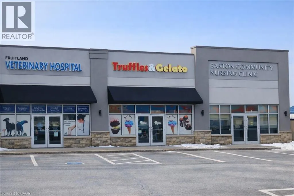 Northwest corner of Barton & Fruitland. From QEW, exit Fruitland, south on Fruitland to Barton. Fruitland Crossing - Established Retail Opportunity; Located at the high-profile corner of Fruitland Road and Barton Street, with direct access to and from the QEW, Fruitland Crossing offers strong visibility and connectivity at the entrance to one of Hamilton's key growth corridors. Property Highlights: -1,214 sq ft available unit - currently finished as an ice cream shop and fully air-conditioned; The building is well established (over 10+ years old) with durable construction and consistent tenancy; Abundant free parking on site; Strategically positioned near residential communities and travel routes; Demographic & Market Context: Hamilton's broader population continues to grow, with estimates showing a population of 785,000+ in the CMA area (including surrounding communities), supporting long-term customer demand in key nodes such as Fruitland and Barton. Local household income levels in Hamilton are strong overall, with average household income estimates in the mid-to-high range for the region. This space is ideal for a wide range of retail and service-based uses, including quick service restaurant(Q&R), specialty food, health and wellness, boutique retail, and select medical or personal services. Cannabis-related uses will not be permitted. (id:27476)