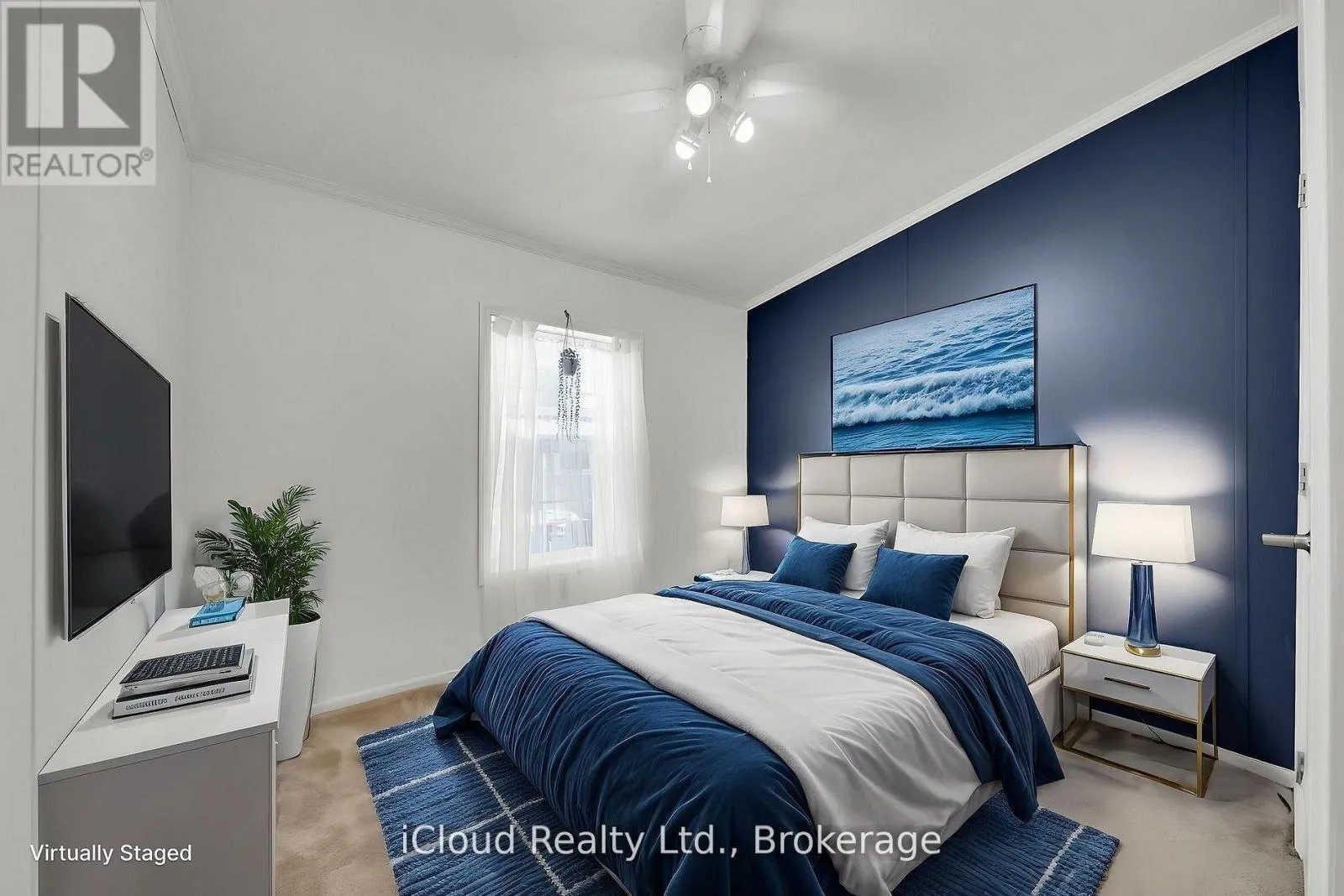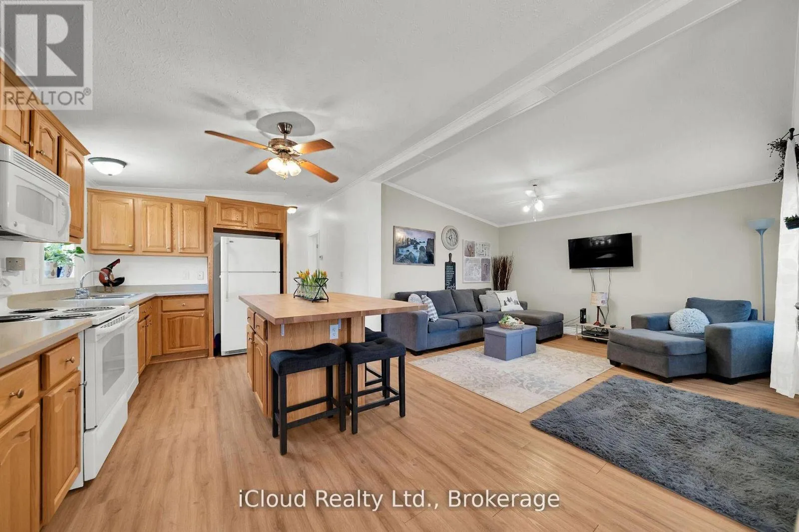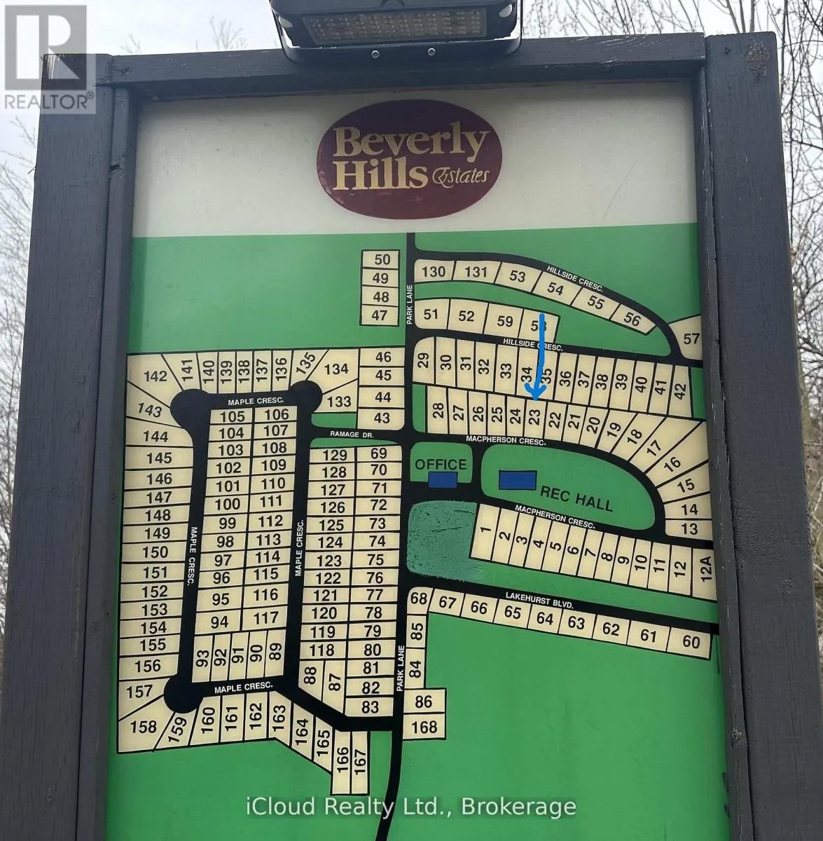 8th Concession W and Beverly Hills Estates Buyer Incentive, On closing,the Seller will credit the Buyer 2 months of the landlease cost. Welcome to the exquisite Beverly Hills Estates within the vibrant Parkbridge community!This charming 2-bedroom bungalow at 23 Macpherson is surrounded by beautifully landscaped perennial gardens and features a welcoming covered front porch. Step inside to discover a spacious open-concept layout highlighted by soaring cathedral ceilings, creating an inviting atmosphere.The kitchen is a chef's dream, complete with a cozy breakfast nook, ample cabinetry, and generous countertop space. For even more functionality, a central island provides additional workspace while overlooking the sunlit living room.The home boasts two well-proportioned bedrooms with ceiling fans, with the primary suite featuring a three-piece ensuite and double closets for your convenience. An additional versatile room at the back of the house can serve as a third bedroom, office, playroom, craft space, workout area, or cosy sitting/T.V. room. The possibilities are limitless! A beautifully finished laundry room provides access to the side yard, which includes a deck and shed.The property also includes a double driveway for ample parking. As a resident of this fantastic community, you'll have access to the Recreation Centre, where you can enjoy activities like pool, cards, bingo, and darts, or host events in the full kitchen with family and friends. Adults can unwind at the horseshoe pits, adding to the sense of community and enjoyment. Conveniently located on a paved circle in a serene rural setting just off Hwy 6, this home provides easy commuting to Burlington, Cambridge, Guelph, Hamilton, Milton, Oakville, and Waterdown.You're just 15 minutes from the 401 and 403 highways.The monthly lease fee of $799.69 includes taxes property taxes, snow removal for common areas, and grass cutting. Don't miss out on calling this beautiful bungalow your new home! (id:27476)