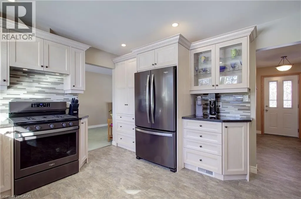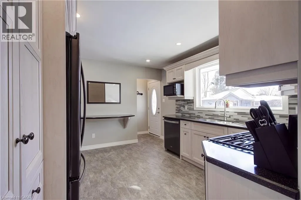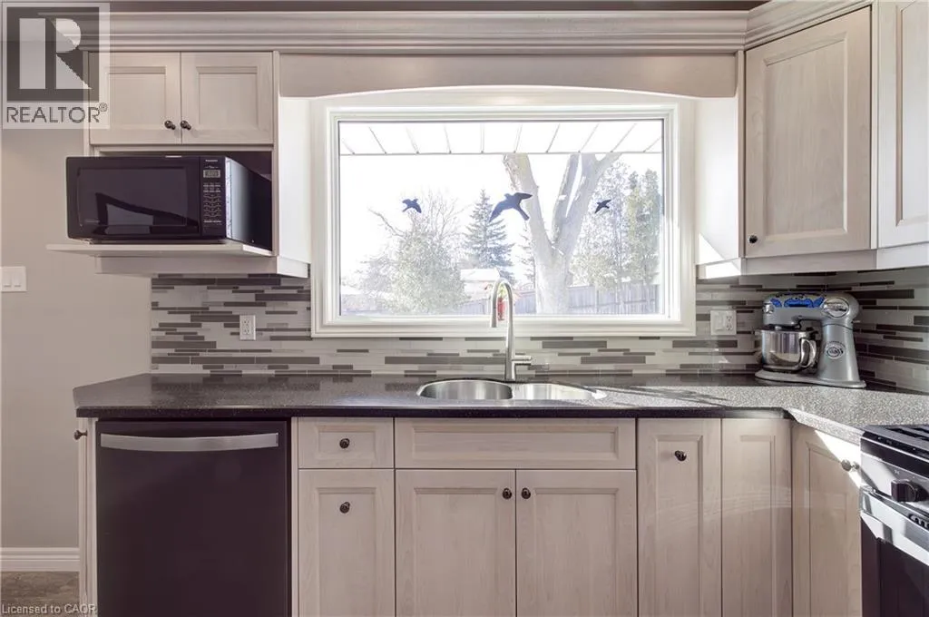 Upper Sherman/ Mohawk Rd E Immaculately maintained and truly move-in ready, this home offers an exceptional blend of comfort, functionality, and thoughtful updates throughout. The updated kitchen is designed for both everyday living and entertaining, featuring abundant cabinetry and counter space, stainless steel appliances including a gas stove, and an oversized pantry with convenient pull-out drawers for optimal organization. A separate dining room provides the perfect setting for family meals and gatherings, while the bright living room showcases a large picture window that fills the space with natural light. The upper level offers generously sized bedrooms with ample closet space and an updated bathroom. The finished lower level adds valuable additional living space, ideal for a family room, along with a versatile bonus room perfect for a home office, playroom, or workout space. Laundry room with extra storage and included freezer. The crawl space has been professionally spray-foamed and provides easily accessible storage. Outside, enjoy a private backyard with easy-to-maintain landscaping and generous garden space, offering the perfect balance of relaxation and usability. Additional highlights include a newly completed front walkway (2025), a 12 x 12 shed with electrical on a concrete pad, gas BBQ included, and parking for up to four vehicles. Ideally located close to schools, parks, shopping, public transit, and major highways. (id:27476)