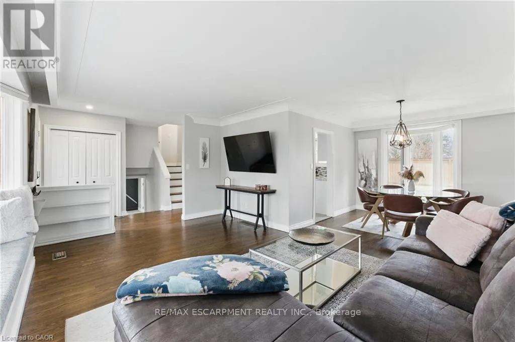 Cross Streets: Seminole Rd. ** Directions: West of Fiddlers Green Rd, South of Wilson St W. Welcome to 160 Council Crescent, a beautifully updated home in the heart of Ancaster, set on a private 75 x 100 ft lot with mature trees and no rear neighbours. This charming property offers the perfect blend of comfort, style, and location. The bright living room showcases a large bow window that fills the space with natural light, while the open living and dining area features recently refinished hardwood floors for a warm, modern feel. The kitchen has been tastefully updated with brand new quartz countertops and offers a walkout to the spacious, fully fenced backyard - ideal for entertaining, kids, or pets. Upstairs you'll find 3 bedrooms and a recently renovated 4-piece bathroom. The lower level provides versatile additional living space, perfect for a playroom, recreation area, home office, or even a fourth bedroom. Major mechanical updates offer peace of mind, including a new furnace, air conditioner, and owned hot water tank (2024). Located in a highly desirable, family-friendly neighbourhood close to top-rated schools, parks, trails, shopping, and commuter access - this is a fantastic opportunity to own in one of Ancaster's most sought-after communities. (id:27476)