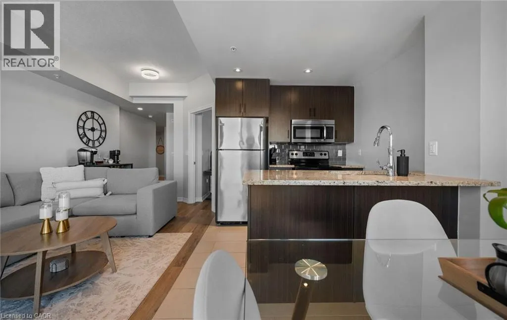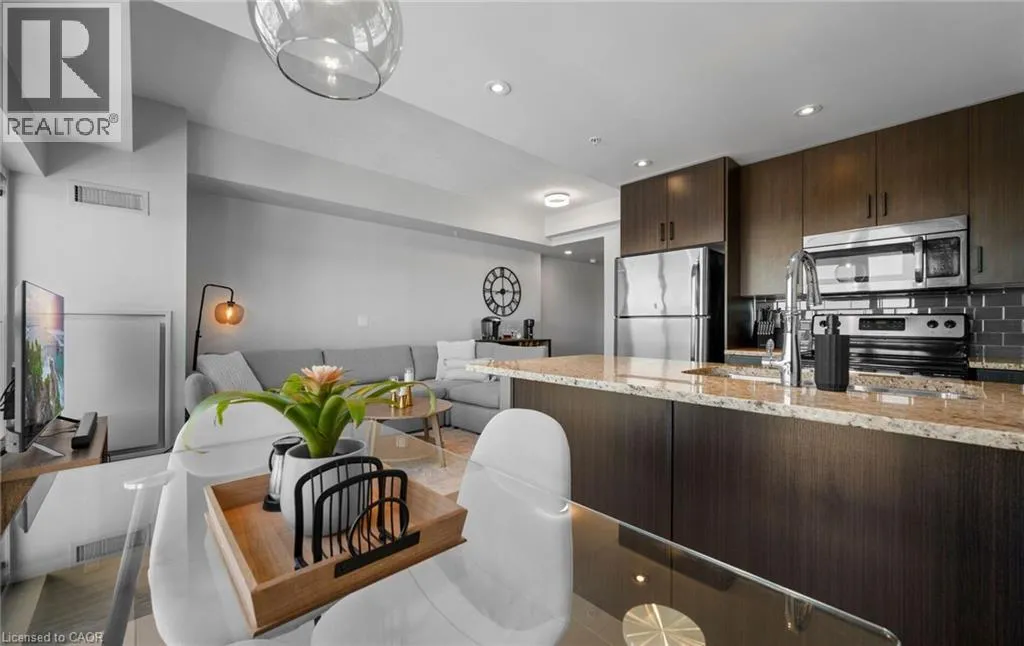 Just in time for Valentine's Day! Welcome to the trendy Urban West condo in desirable Kirkendall. This popular Hyde Park model offers over 800 sq. ft. of bright, functional living space. Featuring two bedrooms, floor-to-ceiling windows, a Juliet balcony, and an open-concept kitchen with granite countertops, this unit is perfect for first-time buyers, downsizers, smart-sizers or investors. Includes underground parking and a locker. Well-maintained building with a rooftop terrace. Steps to vibrant Locke Street, McMaster University, transit, parks, and major highways. (id:27476)