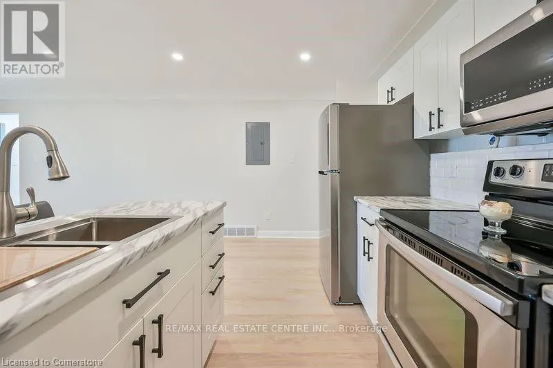 Cross Streets: Palmer Road. ** Directions: East from Upper Gage on Mohawk Rd East. Beautifully renovated 3-bedroom, 1-bathroom home on Mohawk Road in Hamilton! This property boasts a modern kitchen with stainless steel appliances, granite look countertops, and custom cabinetry. The open-concept living and dining areas feature contemporary finishes and abundant natural light. Enjoy the spa-like bathroom with sleek design and high-quality fixtures. Each bedroom is generously sized, perfect for family living or a home office. This home is truly move-in ready. Includes one dedicated parking spot and is conveniently located near schools, parks, LINC, shopping centres, public transit and all other amenities (id:27476)
