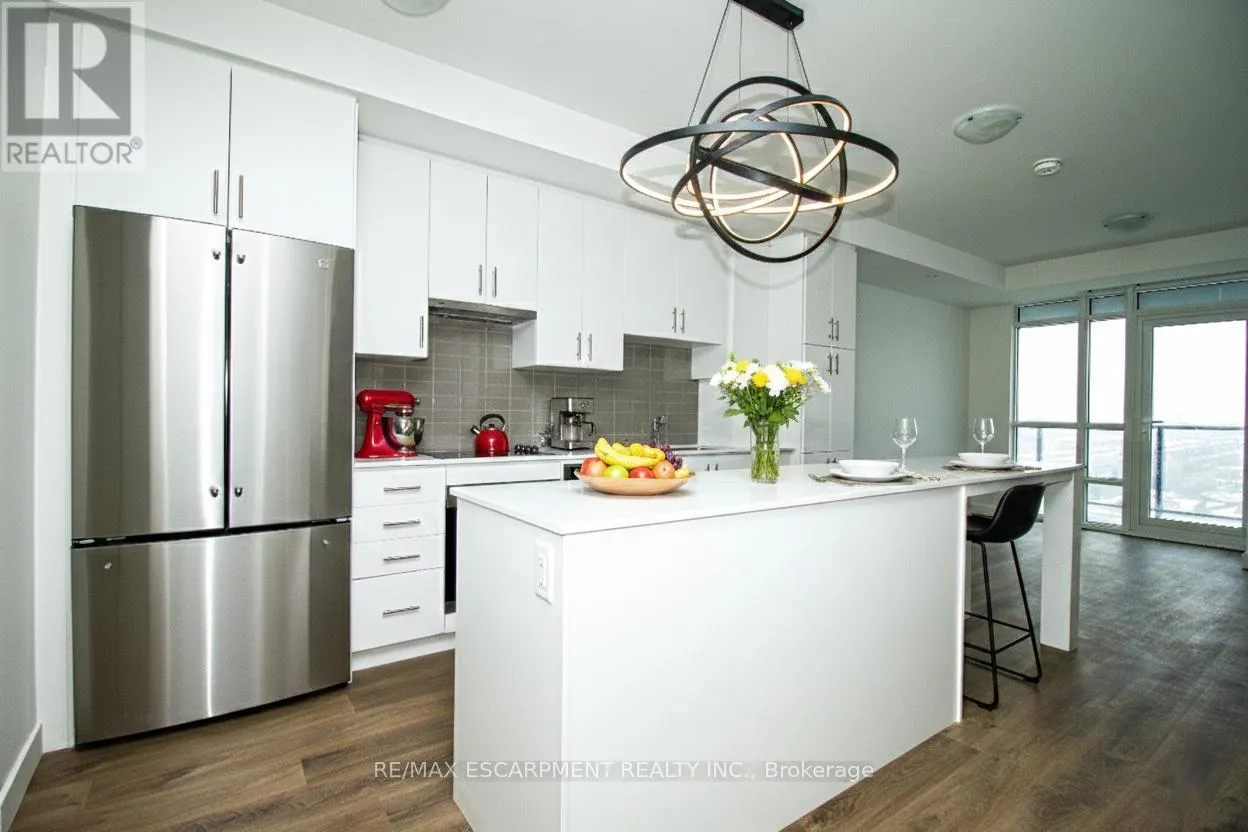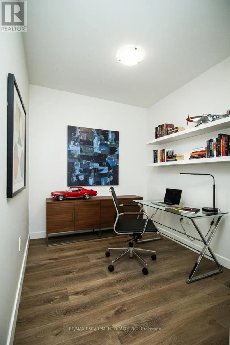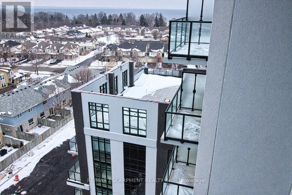Cross Streets: North Service Rd & Green Rd. ** Directions: North Service Rd to Green Rd. Be the first to experience this brand-new 633 sqft, never-lived-in lakeside condo featuring a bright chic 1-bedroom plus den layout and unobstructed, northwest-facing views of both the lake and city skyline. Designed for modern living, the open-concept floor plan with 9' ceiling, showcases a sleek modern kitchen with breakfast island, quartz counter tops and five high end appliances, flowing seamlessly into a sun-filled living area through floor to ceiling windows and your own private balcony. The versatile den provides the ultimate home-office solution, while integrated smart home technology allows you to control lighting and climate at a touch. Take comfort in the convenience of in-suite laundry. Beyond your door, enjoy premium amenities including a rooftop terrace with BBQs, a yoga studio, a pet spa, and a stylish club room. This unit offers a private parking spot, a locker, and effortless access to Confederation Park, walking trails including the new GO Station, and major highways. This stylish condo offers the perfect balance of outdoor escape and urban convenience with ground floor retail. (id:27476)