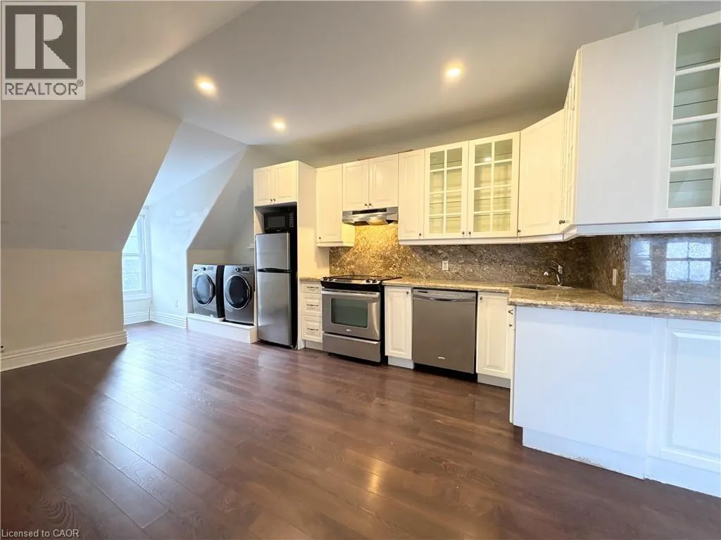 Queen Street South to Robinson Street Thoughtfully updated one bedroom apartment in Hamilton's sought after Durand Neighborhood! Enjoy a wealth of amazing local coffee shops, restaurants, and grocery options within walking distance. This well appointed unit features in-suite laundry and air conditioning for convenient and comfortable living. The kitchen features quartz countertops, a surplus of cabinetry, and stainless steel appliances including a dishwasher. The bedroom features a north-facing nook, perfect for sitting and reading a book or enjoying a cup of coffee. Hamilton GO Centre and St. Joseph's Hospital are a short walk from the property. Tenant to pay hydro. (id:27476)