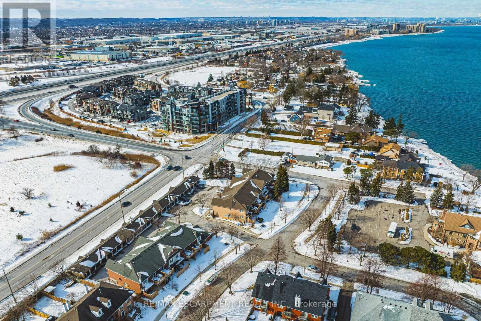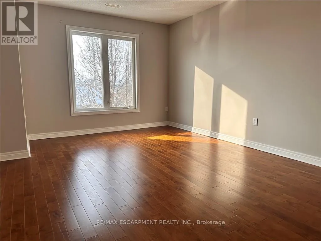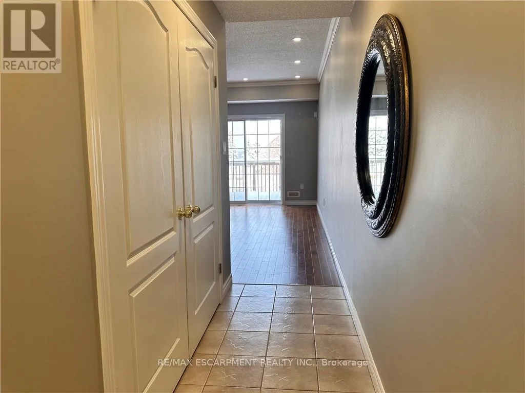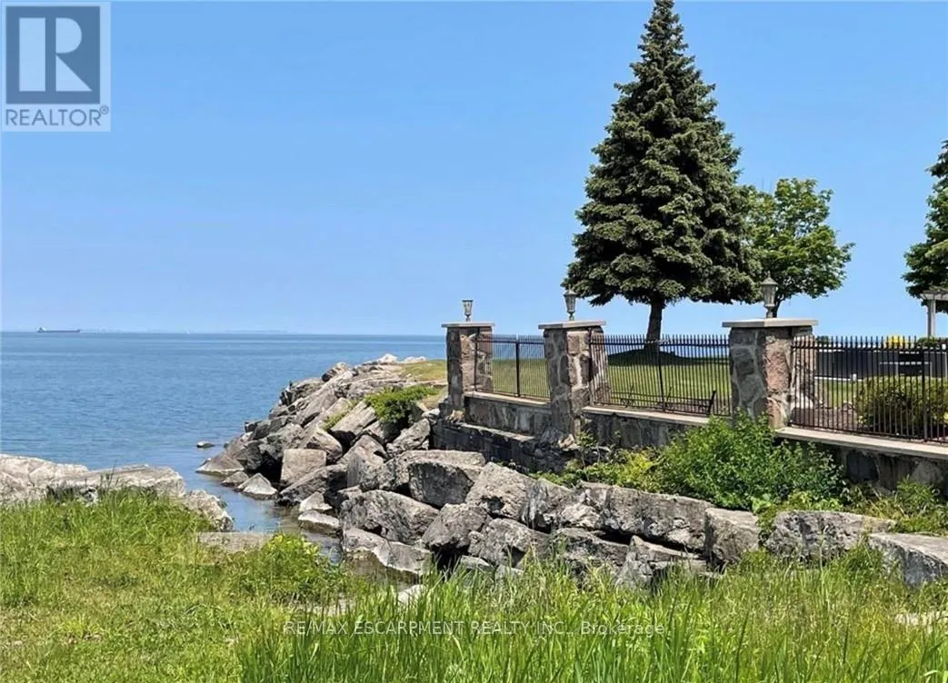 Cross Streets: Fruitland Drive. ** Directions: -. Lakeside townhome located in the renowned Newport Marina Community, one of Stoney Creek's most affluent and desirable areas situated directly off Fruitland Road neighbouring Newport Yacht Club & Marina and steps from the prestigious Edgewater Manor restaurant. This home features 2 bedrooms, 2 full baths, private personal detached garage, and a walkout 11' x 12' balcony terrace. The main floor foyer welcomes you up a set of stairs to the unique layout offering kitchen, baths, laundry and living room all on one level. Hardwood and ceramic floors, pot-lights and plenty of natural light. Large kitchen with oak cabinetry, gas stove ('24), breakfast bar and spacious dining room. The impressive primary suite features walk in closet and 3 piece ensuite with walk in shower. Additional bedroom and full bathroom with tub. Large closets with ample storage. Two parking spaces - 1 in detached garage and 1 outside detached garage. Low maintenance living within a quiet mature complex where pride of ownership is evident. Heat Pump '24 Water Heater 24' (id:27476)