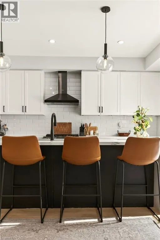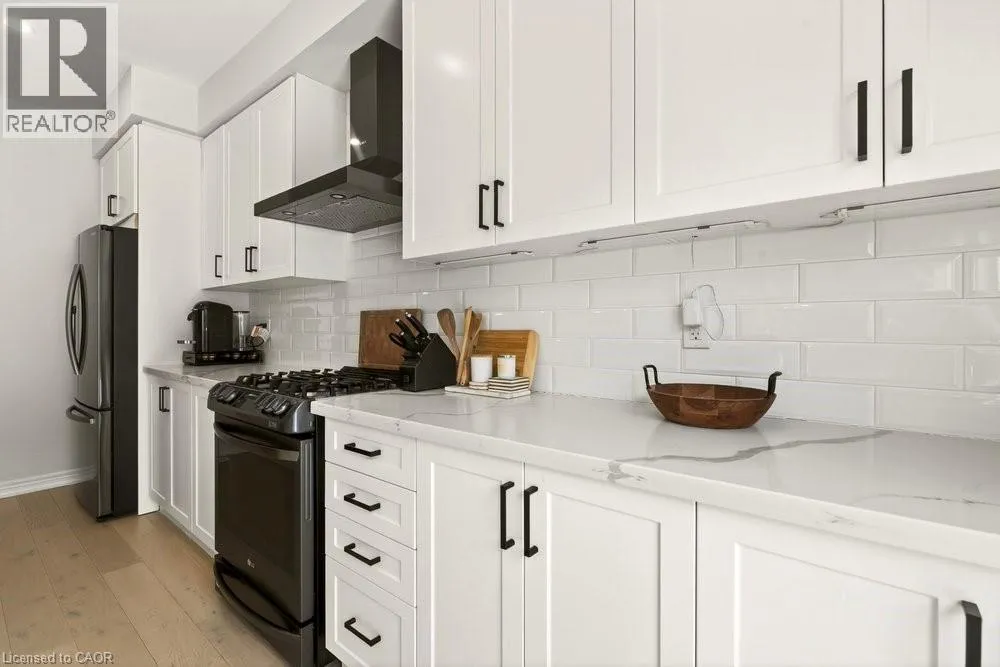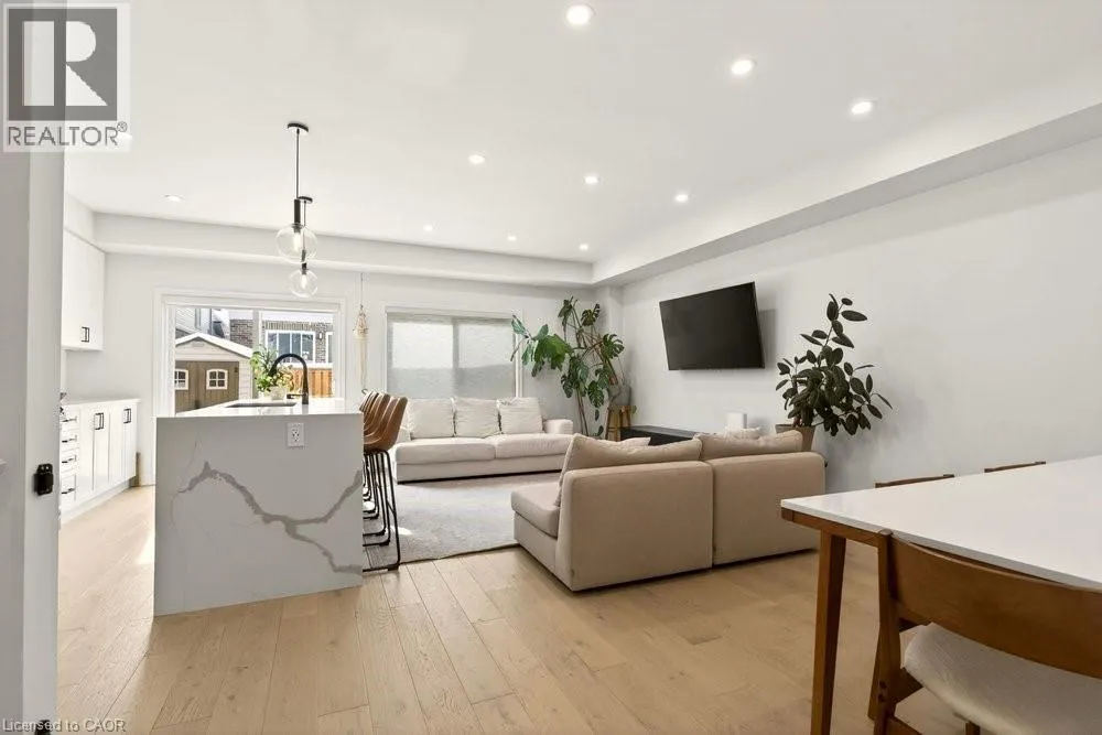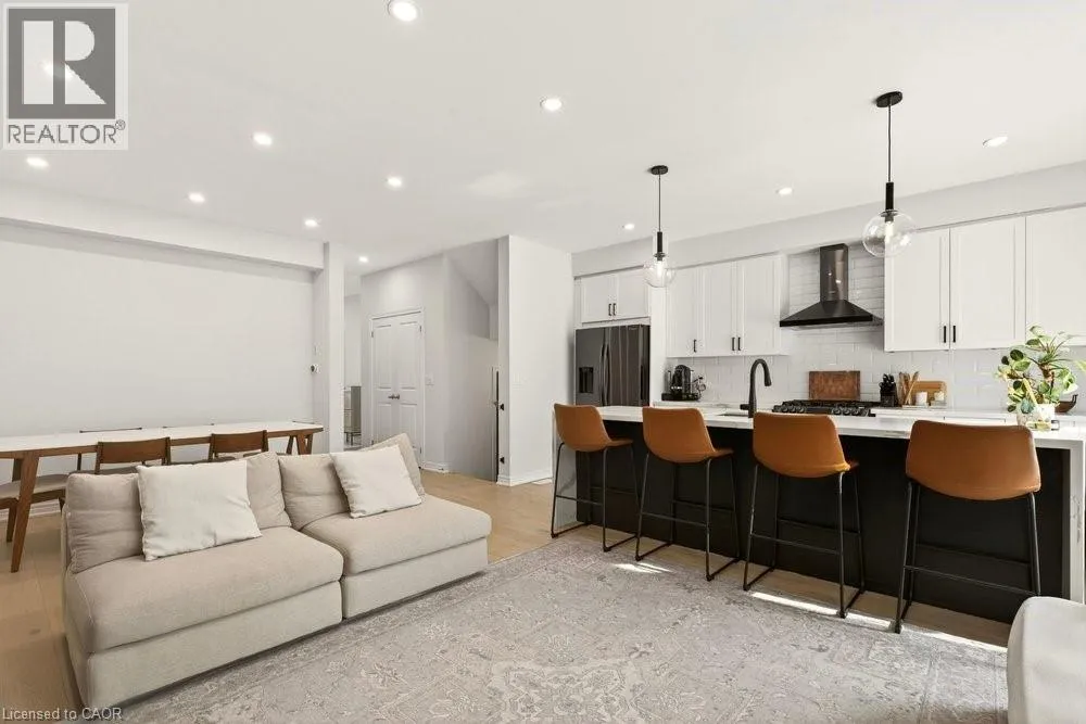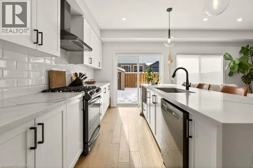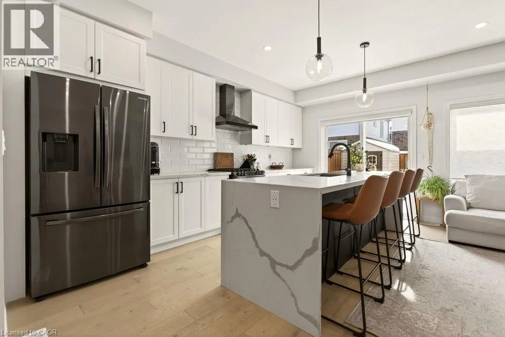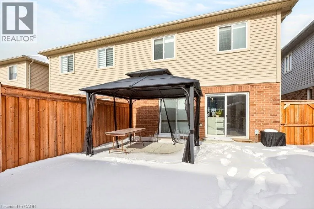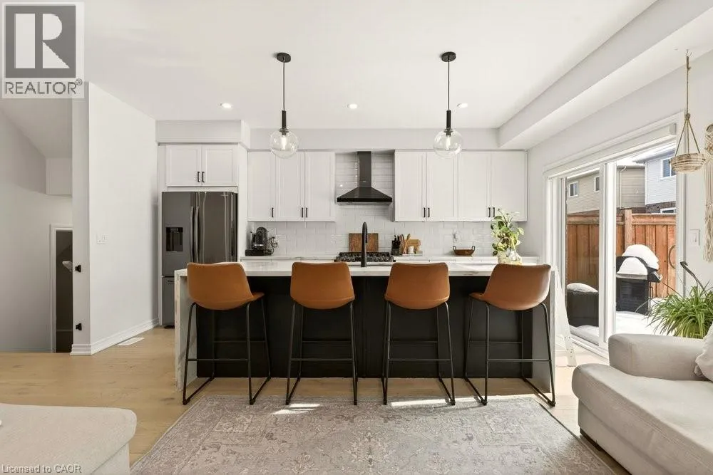 SOUTH FROM MOHAWK ROAD ON CARDINAL TO BOBOLINK Built in 2020 by Dicenzo Homes and offering over $50,000 in thoughtful upgrades and updates this stunning 4-bedroom, 4-bathroom semi-detached home is located in a welcoming, family-friendly community on Hamilton Mountain. With a finished basement, fenced yard, and modern finishes throughout, this home is ideal for families and professionals alike. Enjoy convenient inside entry from the single garage and private driveway. Step into the inviting foyer and immediately appreciate the upgraded flooring and staircase, along with a conveniently located 2-piece powder room. Natural light fills the open-concept main floor, highlighting the beautifully upgraded kitchen â truly the heart of the home. Features include extended cabinetry, black stainless steel appliances with a gas stove, an oversized quartz waterfall island, upgraded undermount sink and faucet, and plenty of prep and gathering space. Upgraded hardwood floors flow seamlessly through the kitchen, living, and dining areas, complemented by pot lights, a large window, and sliding glass doors leading to your private, fully fenced backyard. The concrete patio and gazebo create the perfect setting for outdoor relaxation or entertaining. Upstairs, upgraded hardwood continues through the hallway, leading to four generously sized bedrooms with large closets and cozy carpeting. The spacious primary retreat features a walk-in closet and a stylish ensuite bath complete with a glass shower. The finished lower level expands your living space with a large recreation room, laundry area, ample storage, and a 3-piece bathroom with glass shower â ideal for guests, teens, or a home office setup. 200-amp electrical panel. Centrally located just minutes from l the LINC, with access to the 403 and Red Hill Parkway this home is close to public transit, schools, parks, and shopping. Donât miss this opportunity! Some photos virtually staged. (id:27476)