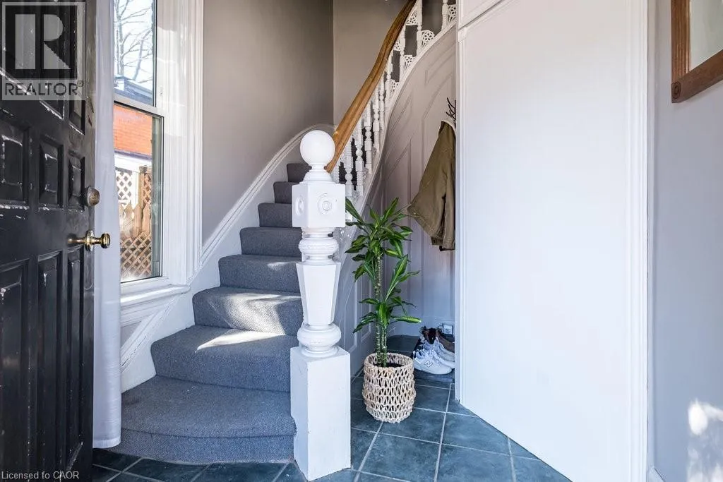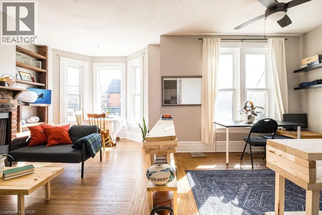 South of Herkimer St/North of Stanley Ave on Queen St South on the West side of the street Urban-chic Victorian one-bedroom suite located in a charming pocket of century homes on the Kirkendall side of the desirable Durand/Kirkendall border. This bright second-floor unit blends classic character with modern appeal, featuring hardwood floors, high ceilings, large windows, and a decorative fireplace for added warmth and charm. The sun-filled living and dining area offers flexible space for relaxing or working from home and showcases a beautiful bay window. Enjoy your own private 160 sq. ft. deck located just off the kitchen. Exceptional walkable location close to Locke Street and James Street South shops, cafés, restaurants, art galleries, GO Station, hiking trails, Hamilton Tennis Club, running track, community centre with indoor pool, and St. Josephâs Hospital. Easy access to McMaster University, major hospitals, the escarpment, LINC, and Highway 403. One parking space included at rear. Tenant to pay 40% of utilities (heat, hydro, and water), approximately $165â$200 per month depending on usage, plus shared internet at approximately $45 per month. Shared laundry conveniently located in the basement. Available April 1, 2026. (id:27476)