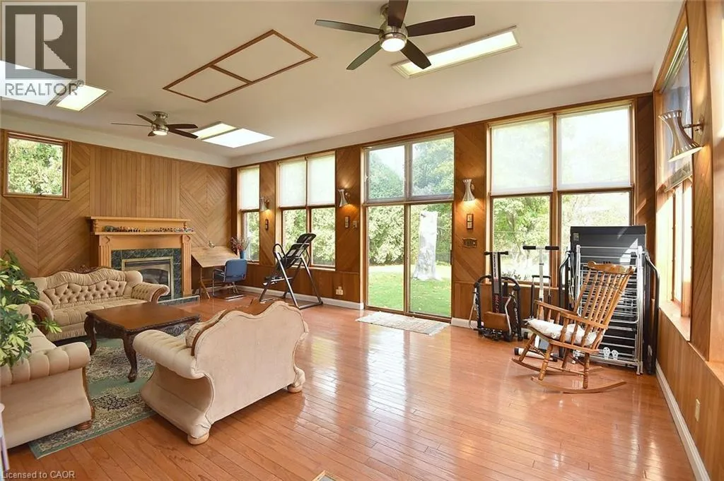 Between Dundas (Hwy 5) And Parkside Welcome to 564 Evans Rd, possibly the most convenient rural location in Waterdown/Flamborough! Nestled on a totally private lot surrounded by trees on the eastern edge of Waterdown and bordering Burlington, it is literally minutes to both communities with their shopping, entertainment and recreational facilities. Ideal for commuters with quick access to the major highways (QEW, 403, 407), and a short drive to either Aldershot or Burlington GO stations. This carpet-free brick bungalow is deceivingly large and is flooded with natural light thanks to its large windows and many skylights. The open concept living/dining and kitchen areas are highlighted by the cherry hardwood floors, wood burning fireplace and pine kitchen which features an island with breakfast bar, large pantry, crown moldings, stainless steel appliances and loads of work and storage space. Three good sized bedrooms with laminate flooring and a four-piece bath with skylight complete the main level. A few steps down is the huge 11 foot high family room with hardwood floors, gas fireplace, skylights and a wall of windows overlooking the large rear yard and 26â X 20â deck. The partly finished lower level provides additional living space with 2 spacious rec/games rooms, a generous laundry and utility rooms. The rear yard is fully fenced and provides ample space for entertaining, backyard activities and relaxation. Grow fresh vegetables in the fenced-in garden or even raise a few chickens in the existing coop. An added bonus is the finished bunkie with hydro that would make a perfect studio, office, guest room, teen retreat or man cave/sheshed! Looking for a home with a bit more elbow room yet close to city amenities? Welcome Home! (id:27476)