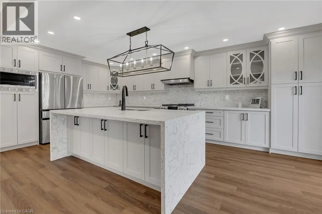 DEWITT RD TO CRESTHAVEN DR Better Than New Build! Completely Renovated 4 Bed, 3.5 Bath Home on Premium Lot Welcome to this fully updated, move-in-ready home located on a prestigious 62' x 107' lot. Featuring 4 spacious bedrooms and 3.5 bathrooms, this property offers over 3600sq. feet of finished living space, including a professionally finished basement with in-law suite potential. The main level boasts a formal living room, separate family room, and a stunning open-concept kitchen and dining areaâperfect for entertaining. The custom kitchen includes a large center island, new cabinetry, and premium finishes. The basement offers a second kitchen, large family room, full bathroom, and a rec room that can serve as a 5th bedroom, making it ideal for extended family or guests. Additional highlights: Double car garage with inside entry, Tesla EV charger, and commercial-grade epoxy floor All new energy-efficient windows New 25-year shingles Fully renovated bathrooms New oak staircase with wrought iron balusters All new interior/exterior doors Smart Chamberlain garage door openers Professionally painted interior New high-end blinds Landscaped yard with underground gutter drainage Prime location just minutes to the QEW, schools, shopping, and all amenities. This home shows like a modelâbook your private showing today! (id:27476)