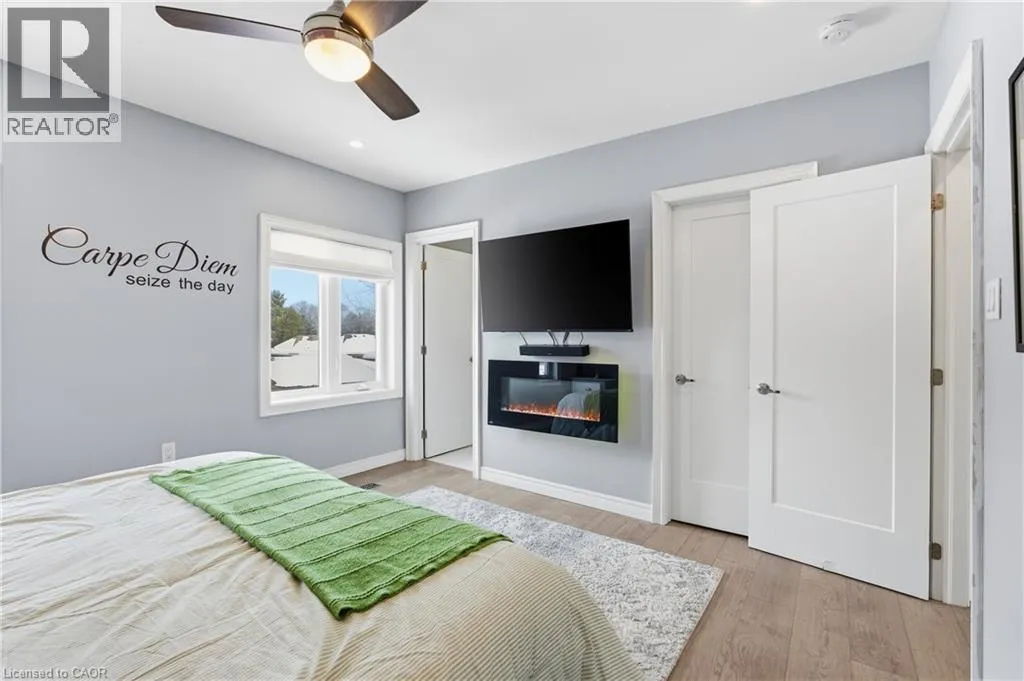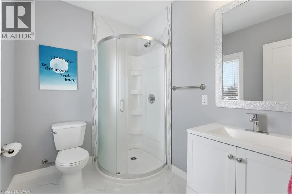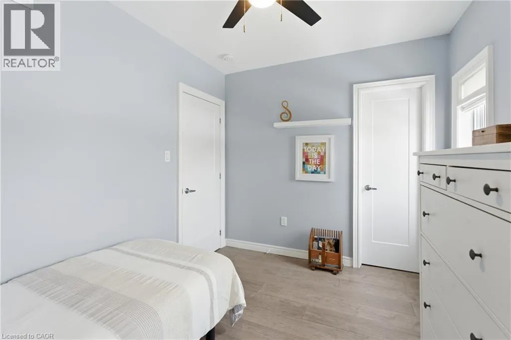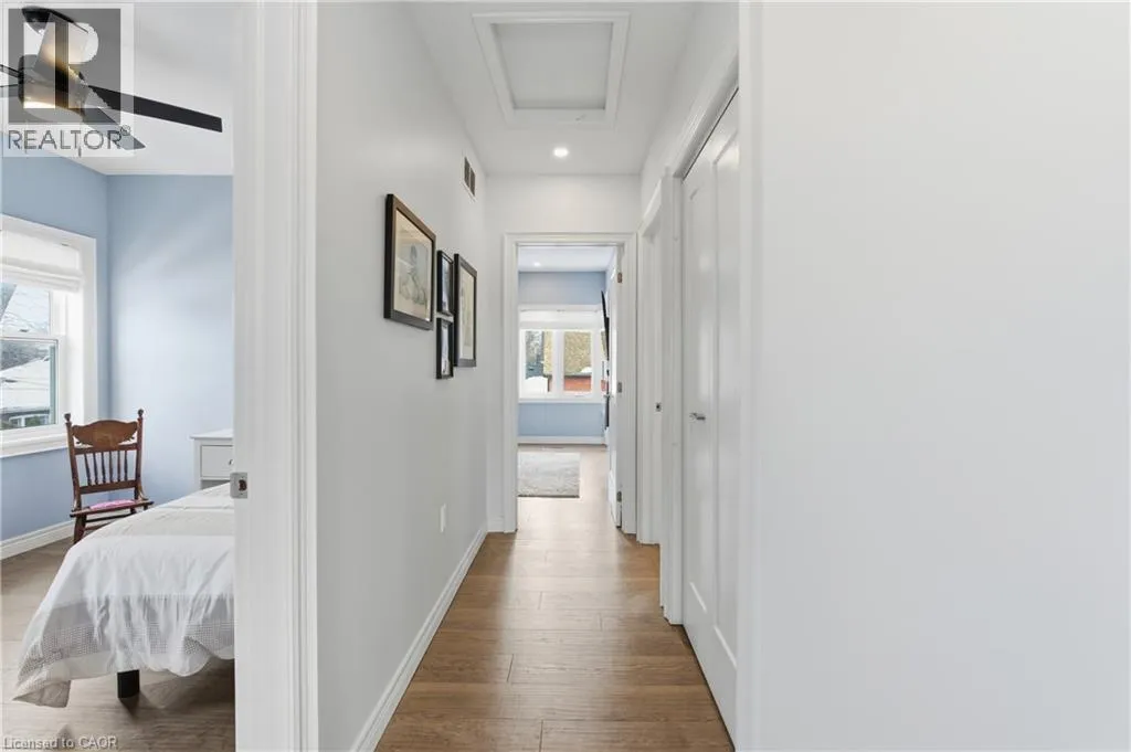 Upper James St to Brucedale Ave E Welcome to 49 Brucedale Avenue E.! Move-in ready and eye-catching, this two-story Hamilton Mountain home is unlike any other. Fully updated with modern finishes in a sought-after neighbourhood, it's designed for today's lifestyle. Featuring three spacious bedrooms, including a primary suite with walk-in closet, en-suite, and cozy gas fireplace, plus second-floor laundry and four baths. The bright, open-concept main floor showcases hardwood floors, pot lights, and a striking brick fireplace with barn wood accents in the living room. The chef-inspired kitchen boasts a quartz waterfall island, ample counter space, stainless steel appliances, and wine and beverage refrigerators. French doors from the dining area open to a two-tier deck-perfect for entertaining and relaxing outdoors. The fully finished lower level includes a spacious bedroom, 2-piece bath, pantry/storage area, and a utility room with 200-amp service. Outside, enjoy two driveways, a detached double-car garage with hydro, a fenced yard, and a Bocce court with turf (2022). Perfectly located near downtown, shopping, top-rated schools, Mohawk College, highways, Brucedale Park, and just steps from the Bruce Trail. A home that seamlessly combines style, space, and convenience-truly a must-see! (id:27476)