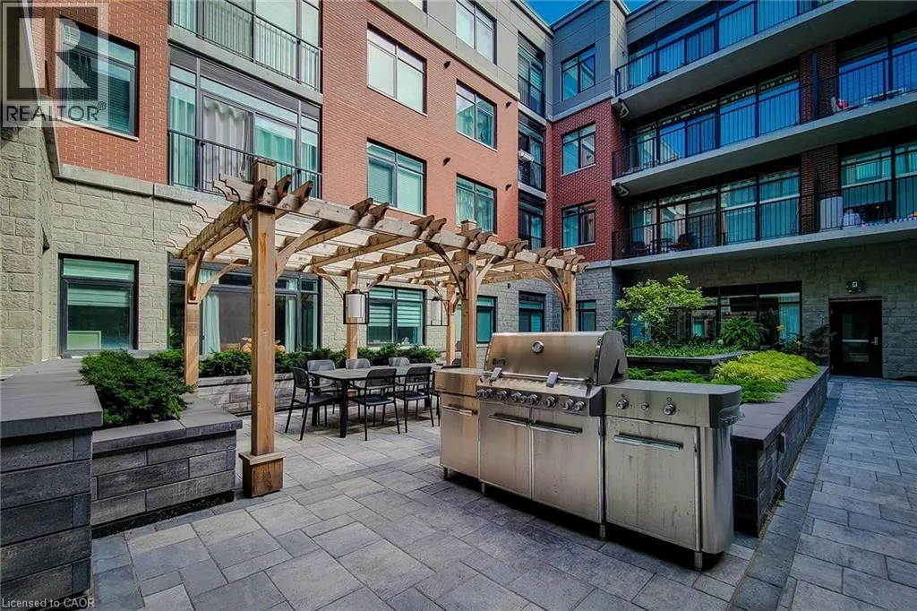 Scenic Dr to Sanatorium Rd to Redfern Ave Super Spacious 2 bed, 2 bath condo with your own private terrace (1071+500 sqft) in quiet boutique building just five years young. Thoughtfull design offers sun-filled living space between two generous sized bdrms with WALK-IN closets and FULL Baths. WALK-IN Shower. Fabulous eat-in kitchen including amazing quartz countertop island, 10 foot ceilings & large windows. In suite laundry. Terrace offers Extra breathing room for pets, plants or quiet moments outdoors with your own gas BBQ hook up. The Complex: This uptown luxury Scenic Trails quiet building, offers a stunning indoor/outdoor space. Check out âThe Caveâ on the main level of the building to enjoy your favourite beverage and a game of pool with friends including a fully equipped party room, theatre, games room and water feature. Also there is a fitness centre, yoga room and an outdoor BBQ courtyard. An amazing West Mountain location. Indoor parking space & a great sized locker included. Perfectly located just steps from trails, parks, waterfalls, Meadowlands shopping, 403 highway access, and a full range of local conveniences. An outstanding opportunity offering space, style, and resort-style amenities in one of Hamilton Mountainâs most sought-after communities. (id:27476)
