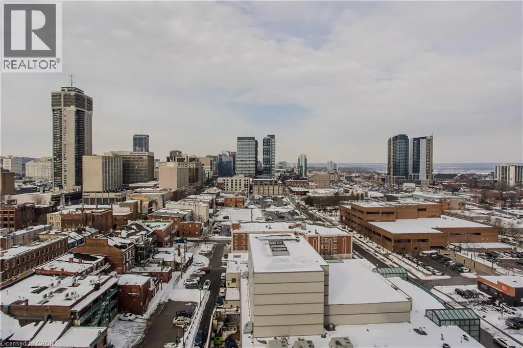 King Street East to Jarvis Street Experience elevated penthouse living in this almost-new luxury residence offering style, comfort, and unbeatable city views. This stunning suite features 2 bright bedrooms, a versatile den ideal for a home office or guest space, and 2 sleek, modern bathrooms. Designed with an exceptional, highly functional layout, the unit showcases breathtaking panoramic views stretching across West Hamilton, creating a spectacular backdrop both day and night. Soaring 9-foot ceilings and dramatic floor-to-ceiling windows flood the space with natural light, enhancing the open, airy feel throughout. Elegant quartz countertops, contemporary cabinetry, and durable wood-pattern vinyl flooring flow seamlessly through the home, delivering a sophisticated, move-in-ready finish. Perfectly positioned in the vibrant heart of downtown Hamilton, youâre just steps to shopping, trendy restaurants, cafes, waterfront trails, and everyday essentials. Minutes to the hospital, McMaster University, public transit, and major highway access, this location offers exceptional convenience for professionals, students, and commuters alike. Whether youâre seeking a stylish urban home or a smart investment in a rapidly growing city, this penthouse delivers the perfect blend of luxury, lifestyle, and long-term value â truly the pinnacle of modern downtown living. (id:27476)