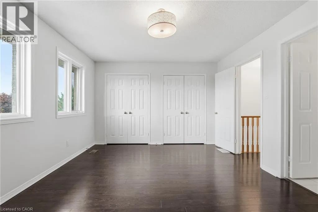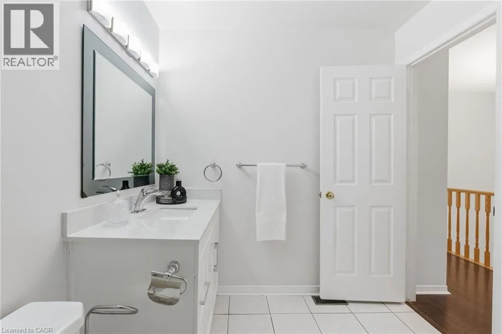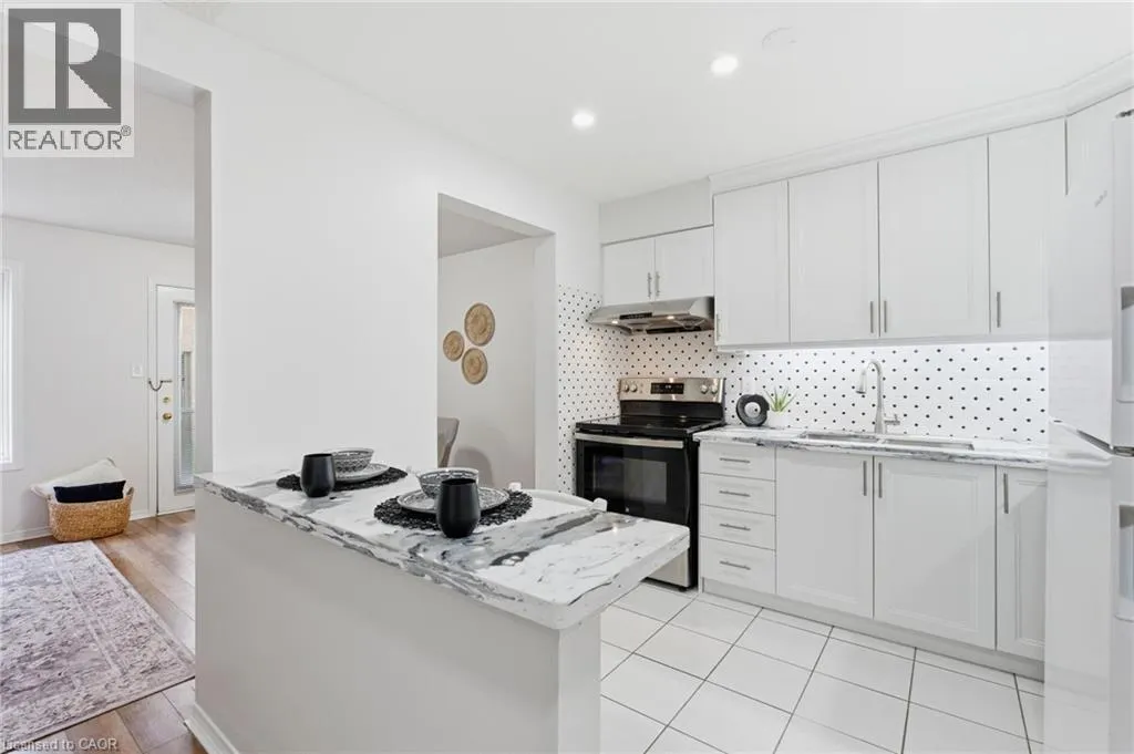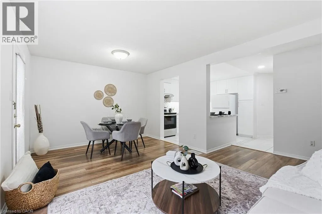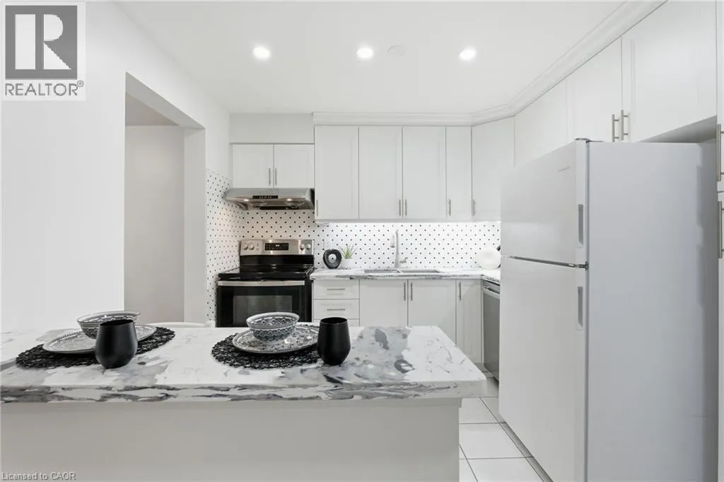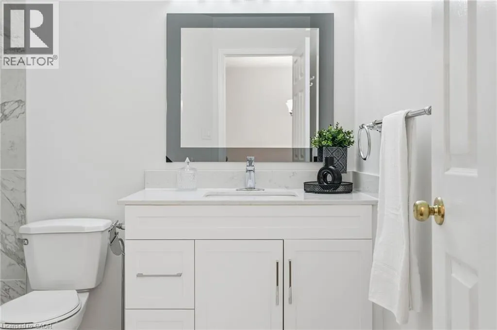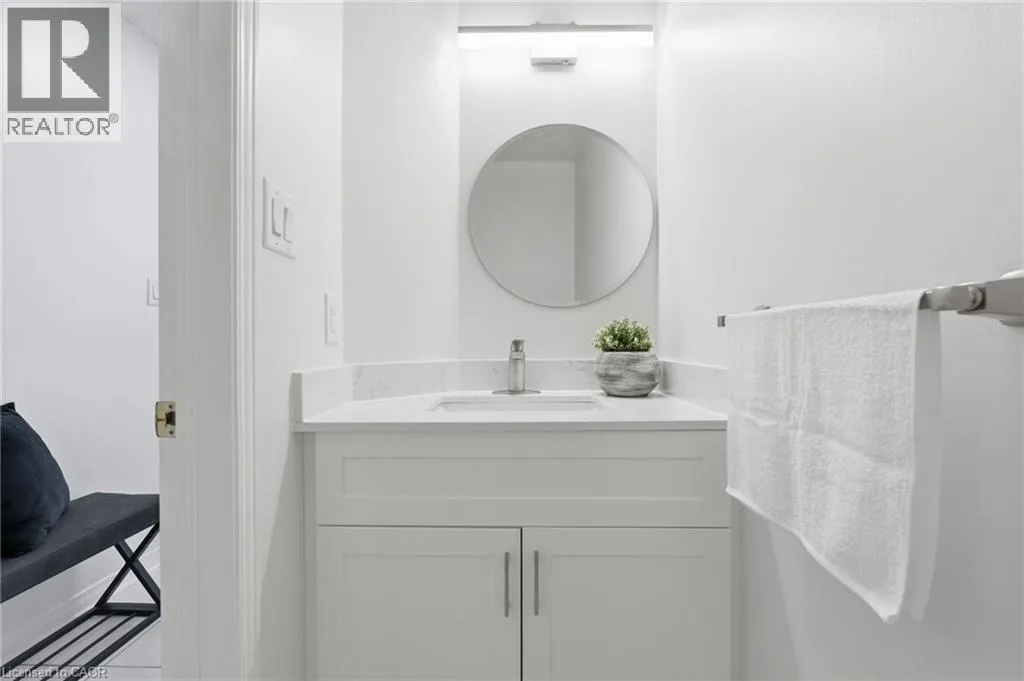 Rymal Rd to Upper Wentworth St to Vineberg Dr Welcome to this beautifully renovated 2-storey end unit townhome featuring 3 bedrooms and 2.5 bathrooms. The main floor is bright and inviting, with large windows and a modern updated kitchen with brand new cabinets and countertops, and some newer appliances. Upstairs, youâll find 2 good sized bedrooms and the spacious primary suite offers his and hers closets along with a private ensuite. The finished basement provides additional living space for a family room, office, or gym. Condo fees include roof, windows, cable, lawn care, main road snow removal, and exterior maintenance (driveway snow removal not included). Conveniently located close to all amenities and highway accessâjust move in and enjoy. Updates: include but not limited to, bathrooms (vanity, countertops, mirror and lights 2025), kitchen (2025), A/C (2025), pot lights (2025). Full renovation list available at the property. (id:27476)