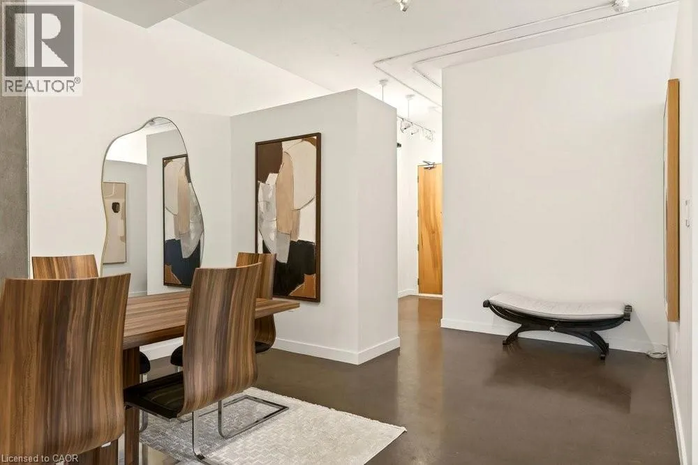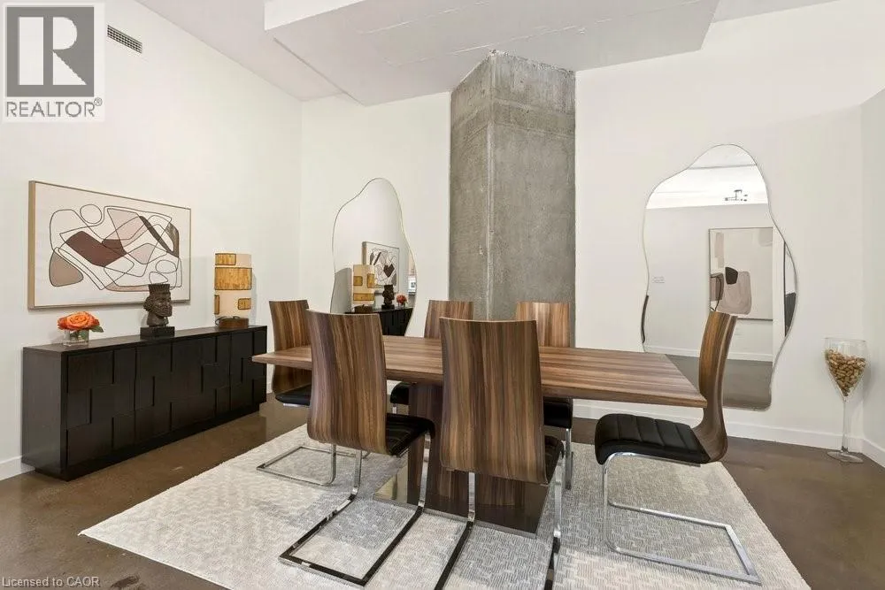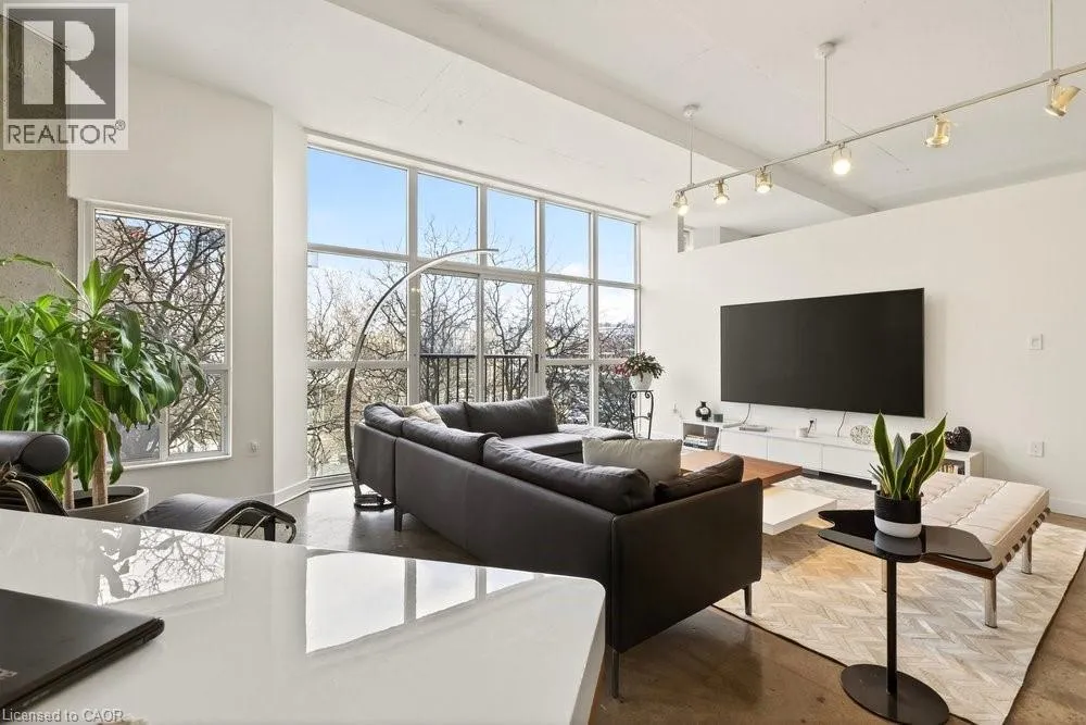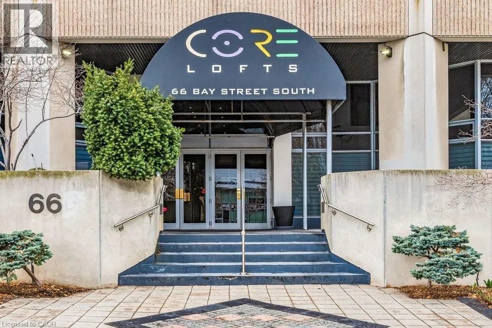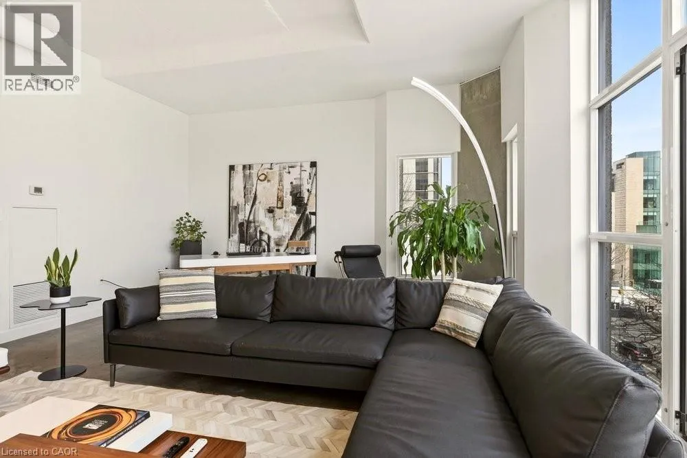 Jackson Street to Bay Street Welcome to Unit 401 at Core Lofts â a stunning corner suite in the heart of downtown Hamilton. Offering just over 1,500 sq ft of open-concept living space, this 2 bedroom, 2 bathroom loft combines industrial character with modern comfort. Featuring 10+ foot ceilings, polished concrete floors, and expansive floor-to-ceiling windows with desirable east and north exposures, this bright and airy unit is flooded with natural light. The spacious kitchen is equipped with granite countertops, stainless steel appliances, and a large island with granite surface, ideal for entertaining. The primary bedroom features floor-to-ceiling windows with custom window coverings and a beautifully appointed ensuite complete with a stand-up shower and soaker tub. The second bedroom offers flexibility for guests, office space, or additional living needs. The unit is tastefully decorated and can be purchased fully furnished. One parking space and a storage locker are included. Building amenities including a gym, meeting/party room, and a rooftop terrace with BBQs and seating areas. Located steps to Hess Street, Locke Street, King William dining district, Jackson Square, and the new TD Coliseum. Enjoy easy access to restaurants, cafés, shopping, entertainment, Bayfront Park, GO Transit, and major highway access. Experience convenient downtown living in one of Hamiltonâs most desirable loft buildings. (id:27476)