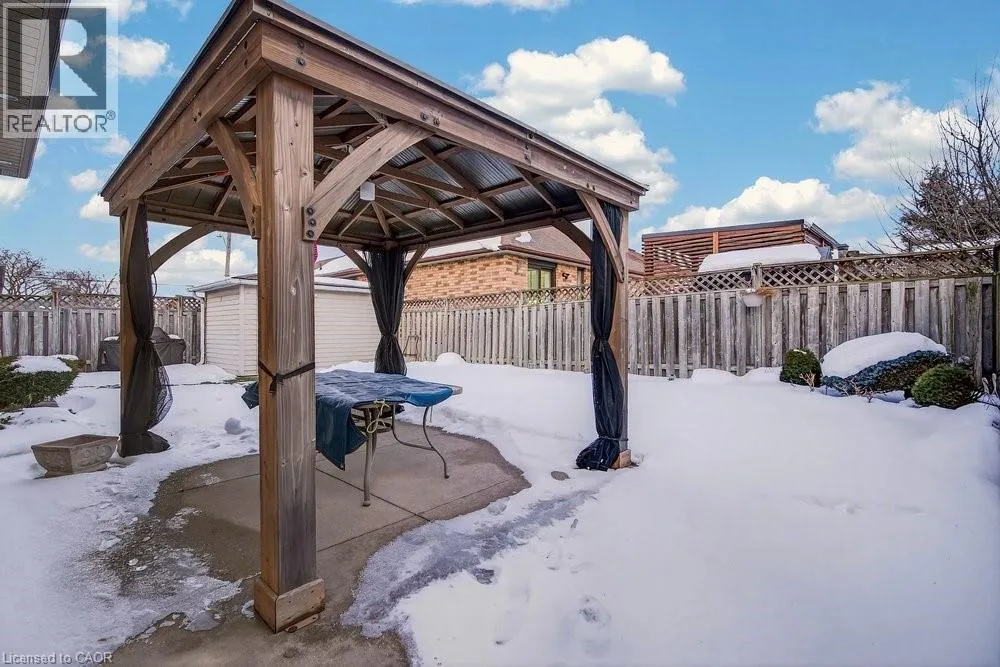 West on Barton St - Left at Nash Rd N - Right onto Kentley Dr - Left on Nugent Dr Pride of ownership shines throughout this beautifully maintained 4-level backsplit in the heart of East Hamilton. Ideally located within walking distance to Eastgate Square, parks, schools, and everyday amenities, and just minutes to the Red Hill Parkway, LINC, and QEW for easy commuting. This spacious family home offers 4 bedrooms and 2.5 bathrooms, thoughtfully designed for comfortable living. The inviting family room features a cozy fireplace and custom built-in entertainment unit perfect for movie nights while the formal living and dining rooms boast cathedral ceilings that create a bright, airy feel. The kitchen blends style and function with granite countertops, a centre island, stainless steel appliances, and a patio door walkout leading to the backyard. An unspoiled lower level provides excellent potential for additional living space. Additional highlights include California shutters, gleaming hardwood floors, and convenient main-level laundry. Outside, enjoy a double garage, four-car concrete driveway, fully fenced yard with gazebo-covered patio, storage shed, and direct man-door access from the garage to the yard. A wonderful opportunity to own a move-in ready family home in one of East Hamiltonâs most convenient and desirable locations. (id:27476)