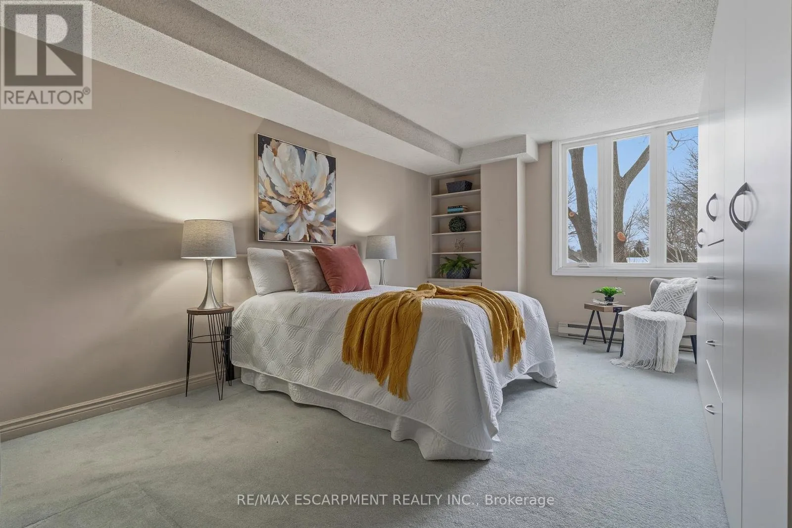 Cross Streets: Fiddlers Green. ** Directions: Near Fiddlers Green. Rarely offered, immaculate one-bedroom suite featuring an updated bathroom with granite countertop and a refreshed oak kitchen complete with backsplash, additional storage cabinetry, under-cabinet lighting, pot lights, double sink, built-in dishwasher, fridge, and stove. Convenient in-suite laundry with stackable washer and dryer plus extra storage. The spacious open-concept living and dining area is filled with natural light and offers a walk-out through oversized patio doors to a generous balcony overlooking mature trees and beautifully manicured grounds. The large principal bedroom features a picture window with views of the front gardens and a walk-in closet. Includes one underground parking space and a locker. Ideally located close to shopping, restaurants, easy access to the 403, scenic hiking trails, Golf & Country Clubs, and numerous parks. Don't miss this opportunity! WOW! (id:27476)