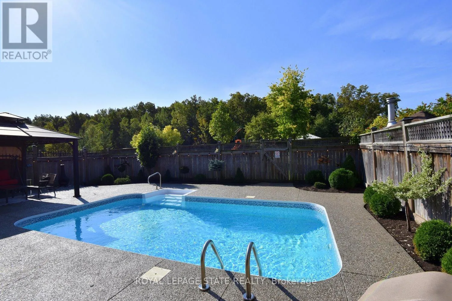 Cross Streets: Tanglewood Dr. ** Directions: Hwy 56 to Maggie Johnson Dr to Tanglewood Dr to Degrow Cres. Dive into summer with the heated saltwater in-ground POOL, the showstopping centerpiece of this exceptional 2009 John Bruce Robinson-built home in desirable Binbrook. Set on a premium 45' x 103' with no rear neighbours and direct access to parkland and forest, this backyard retreat also features an exposed aggregate patio and low-maintenance landscaping - the perfect blend for relaxation, and entertaining. This stunning two-storey home offers timeless curb appeal with its elegant combination of stone, brick, and siding. A spacious exposed aggregate double driveway leads to a charming covered front porch, creating a warm welcome. Located in a sought-after family-friendly neighbourhood, you're within walking distance to local shops and just 10-15 minutes to Hamilton, Stoney Creek amenities, the Linc, Red Hill, and QEW. Inside, approx 1900 sq. ft. to beautifully finished living space showcases 9-foot ceilings, crown molding, hardwood floors, upgraded tile and designer lighting. The inviting foyer offers inside access to the two-car garage and flows past a custom oak staircase and convenient two-piece bath into the formal dining room. The chef-inspired kitchen is loaded with premium FEATURES, including Barzotti maple cabinetry, granite countertops, breakfast bar, stainless steel appliances, and a stylish tile backsplash. A French door walkout provides seamless access to the backyard and POOL, ideal for indoor-outdoor entertaining. The adjacent great room impresses with vaulted ceilings, and a cozy natural gas fireplace. Upstairs, the spacious primary suite features a walk-in closet and luxurious four-piece Jacuzzi ensuite with separate shower. Two additional bedrooms and a four-piece main bath complete the level. The unfinished basement includes laundry, a bathroom rough-in, and excellent potential for future customization. With standout FEATURES including the POOL, premium park-backing lot, and no neighbours in front, this home offers it all, don't miss it! RSA (id:27476)
